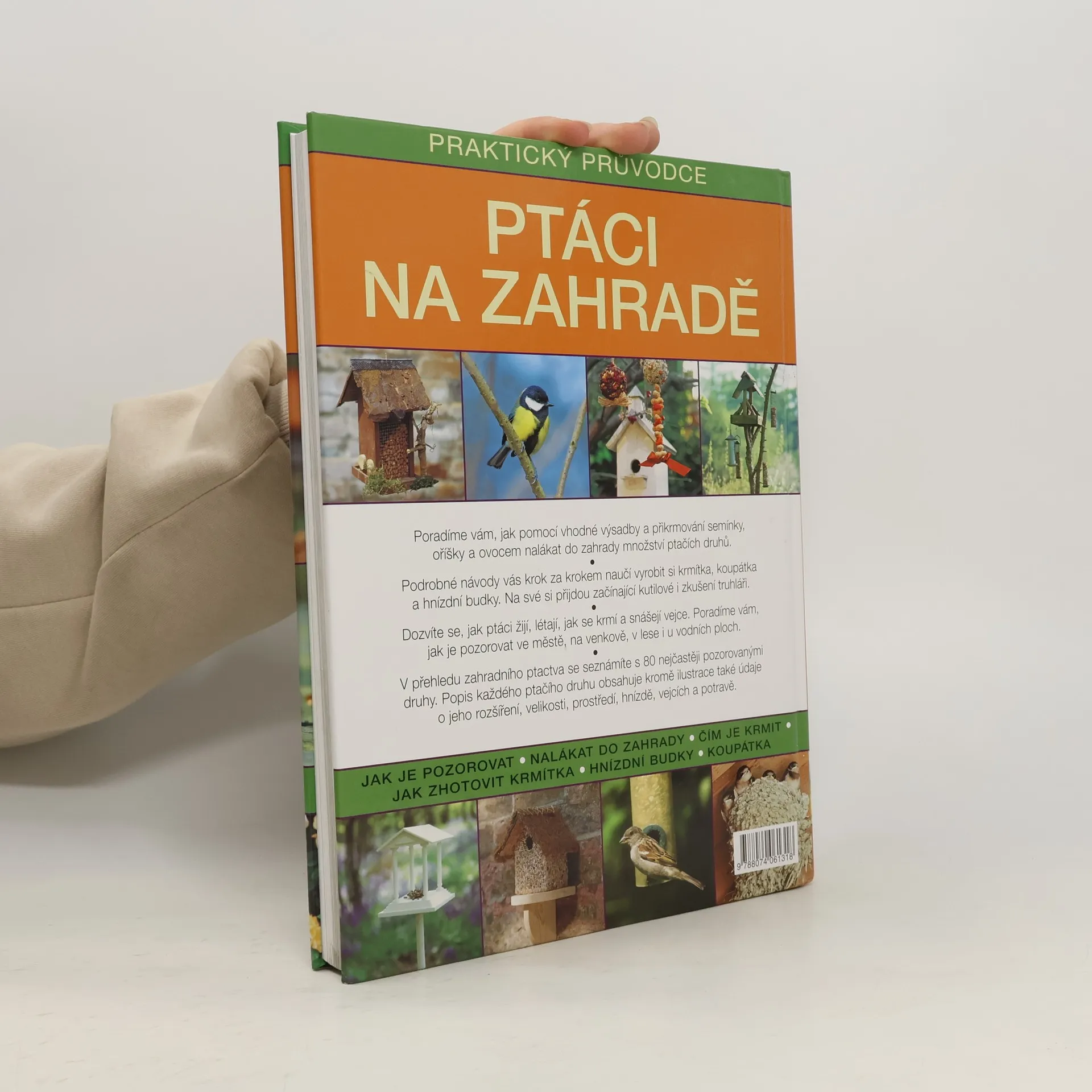 Poutavá kniha Ptáci na zahradě potěší každého milovníka přírody, který se touží vyznat v nepřeberném množství ptačích druhů a zároveň by rád na své zahradě či pozemku přivítal alespoň některé z nich. V knize najdete praktické rady a tipy, jak osázet a upravit svou zahradu tak, aby byla pro ptactvo dostatečně přitažlivá. Dozvíte se, jak postupovat při stavbě ozdobných ptačích budek a dalších „projektů“, které vám pomohou ptáky do zahrady přivábit. Naleznete zde i zajímavé náměty na krmítka a koupadla, která se hodí do každé zahrady a zvládne je vyrobit i méně zkušený kutil. Navíc se dočtete o rozmisťování budek, jejich kontrole a čištění i o tom, kdy a čím ptáky přikrmovat. Součástí knihy je také podrobný ilustrovaný atlas ptáků, kteří se vyskytují ve středoevropských zahradách.
