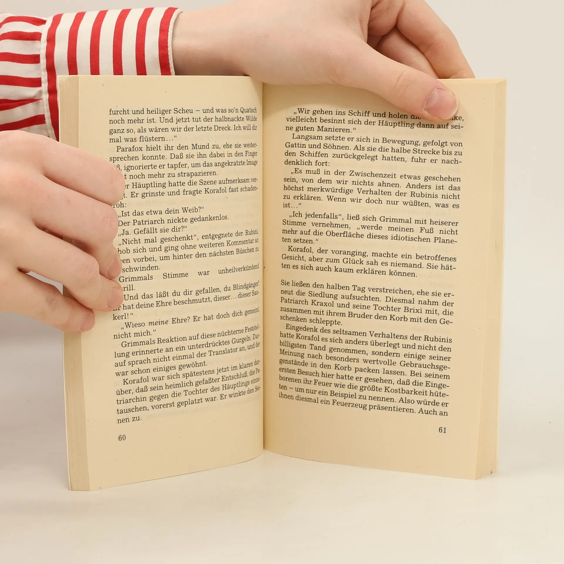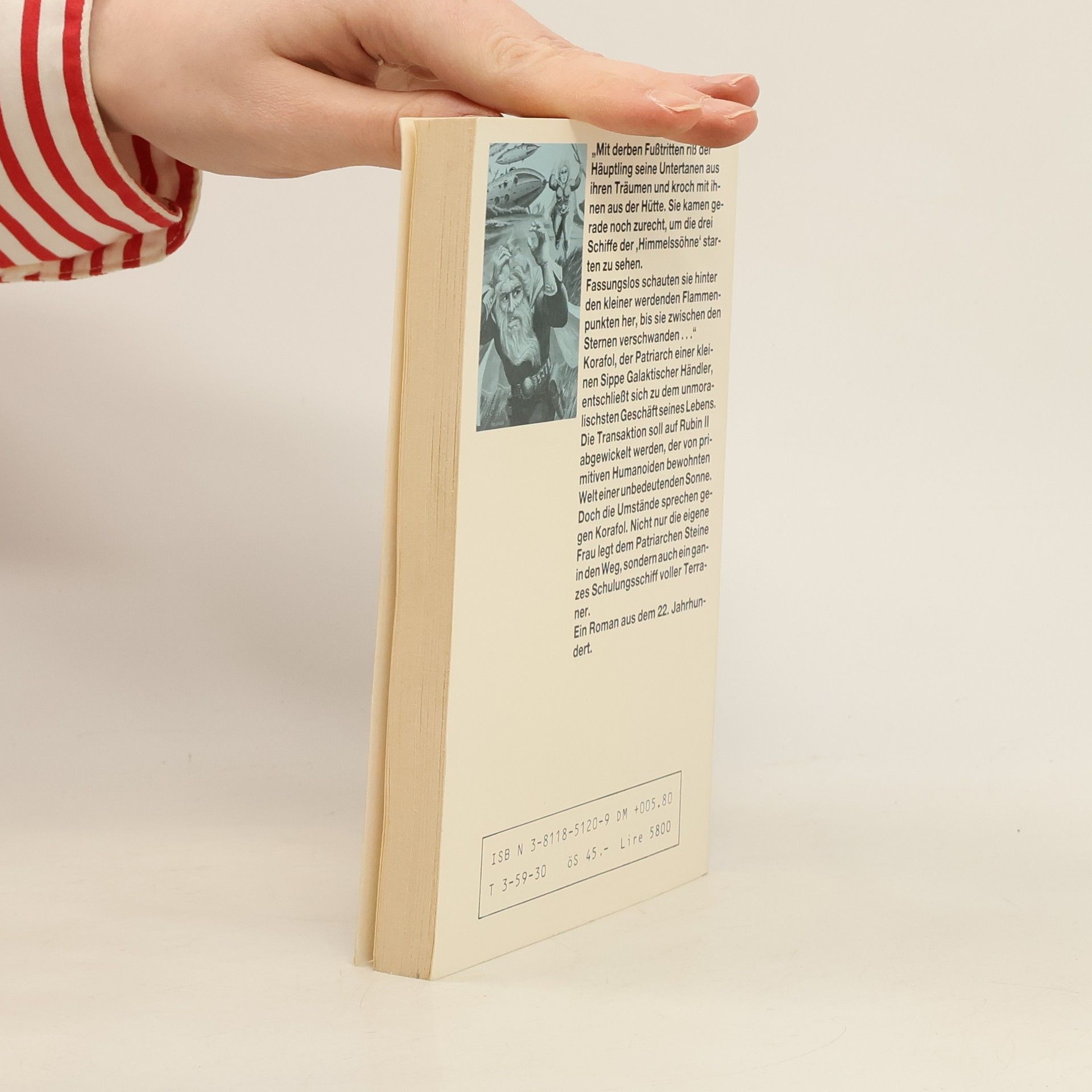 Begegnung auf einer unbedeutenden Welt»Mit derben Fußtritten riß der Häuptling seine Untertanen aus ihren Träumen und kroch mit ihnen aus der Hütte. Sie kamen gerade noch zurecht, um die drei Schiffe der »Himmelssöhne« starten zu sehen.Fassungslos schauten sie hinter den kleiner werdenden Flammenpunkten her, bis sie zwischen den Sternen verschwanden...«Korafol, der Patriarch einer kleinen Sippe Galaktischer Händler, entschließt sich zu dem unmoralischsten Geschäft seines Lebens.Die Transaktion soll auf Rubin II abgewickelt werden, der von primitiven Humanoiden bewohnten Welt einer unbedeutenden Sonne.Doch die Umstände sprechen gegen Korafol. Nicht nur die eigene Frau legt dem Patriarchen Steine in den Weg, sondern auch ein ganzes Schulungsschiff voller Terraner.Ein Roman aus dem 22. Jahrhundert.
