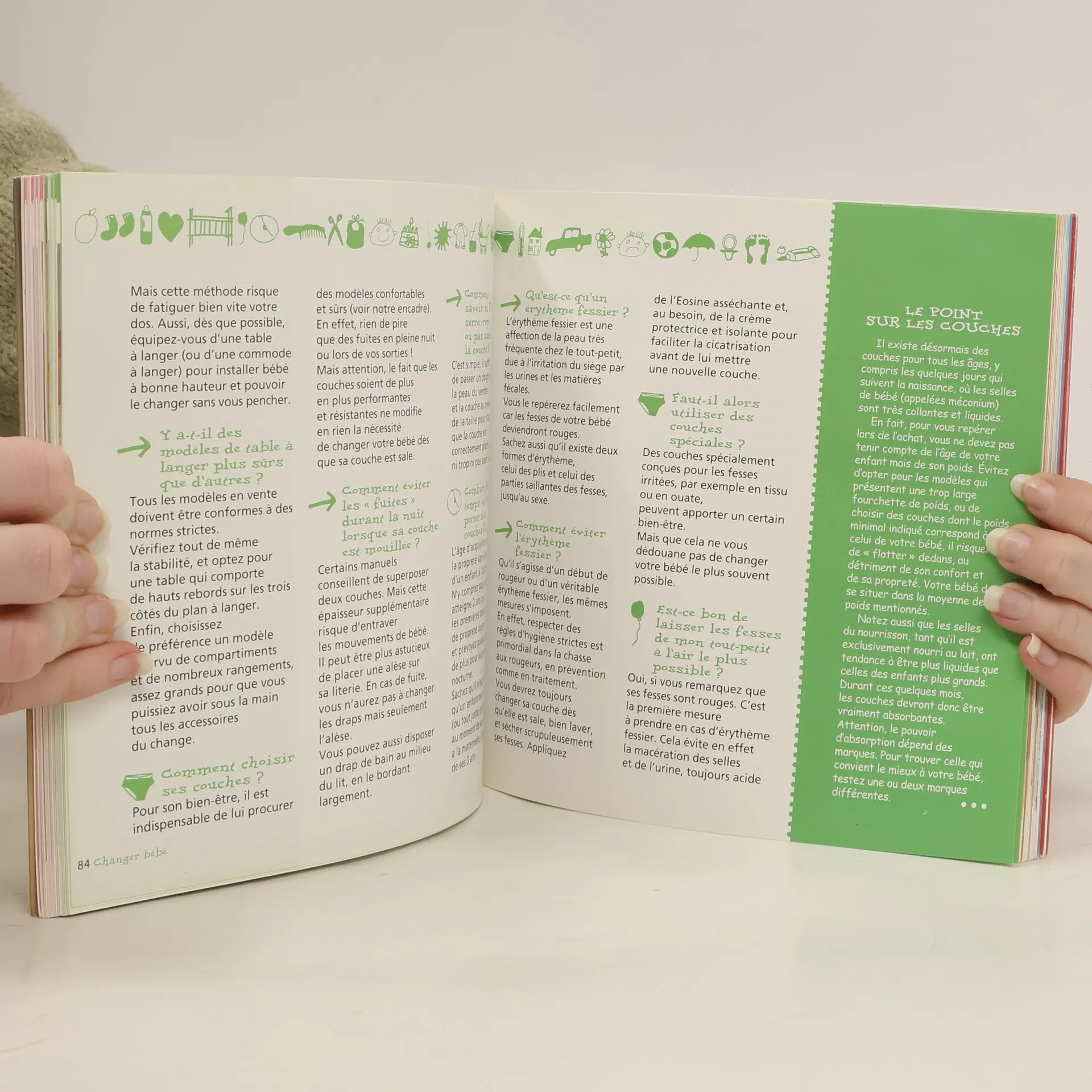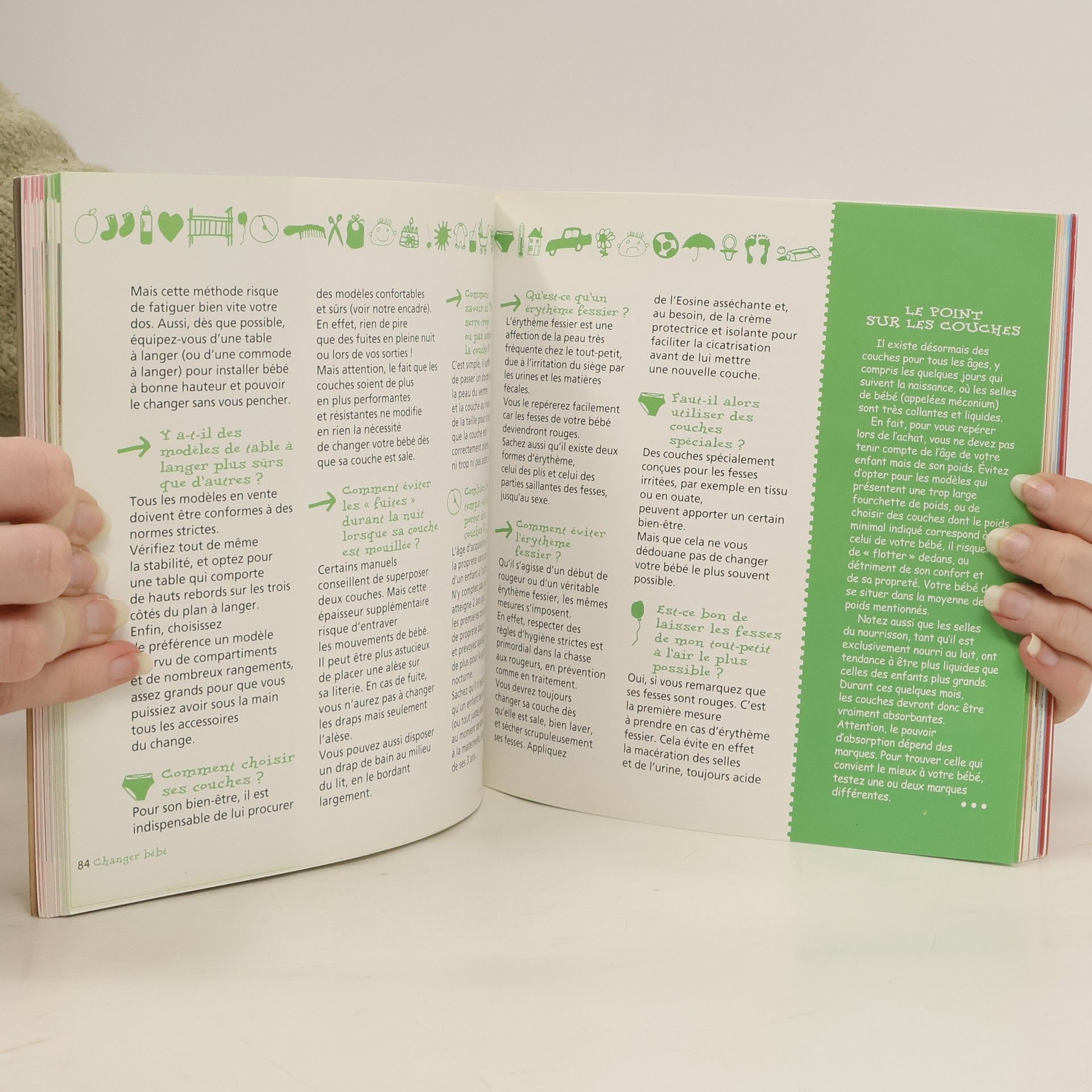 Alimentation, toilette, petits soins, bien-être au quotidien et sommeil, sécurité domestique, signes de maladie, les images montrent geste par geste comment s'occuper de bébé.