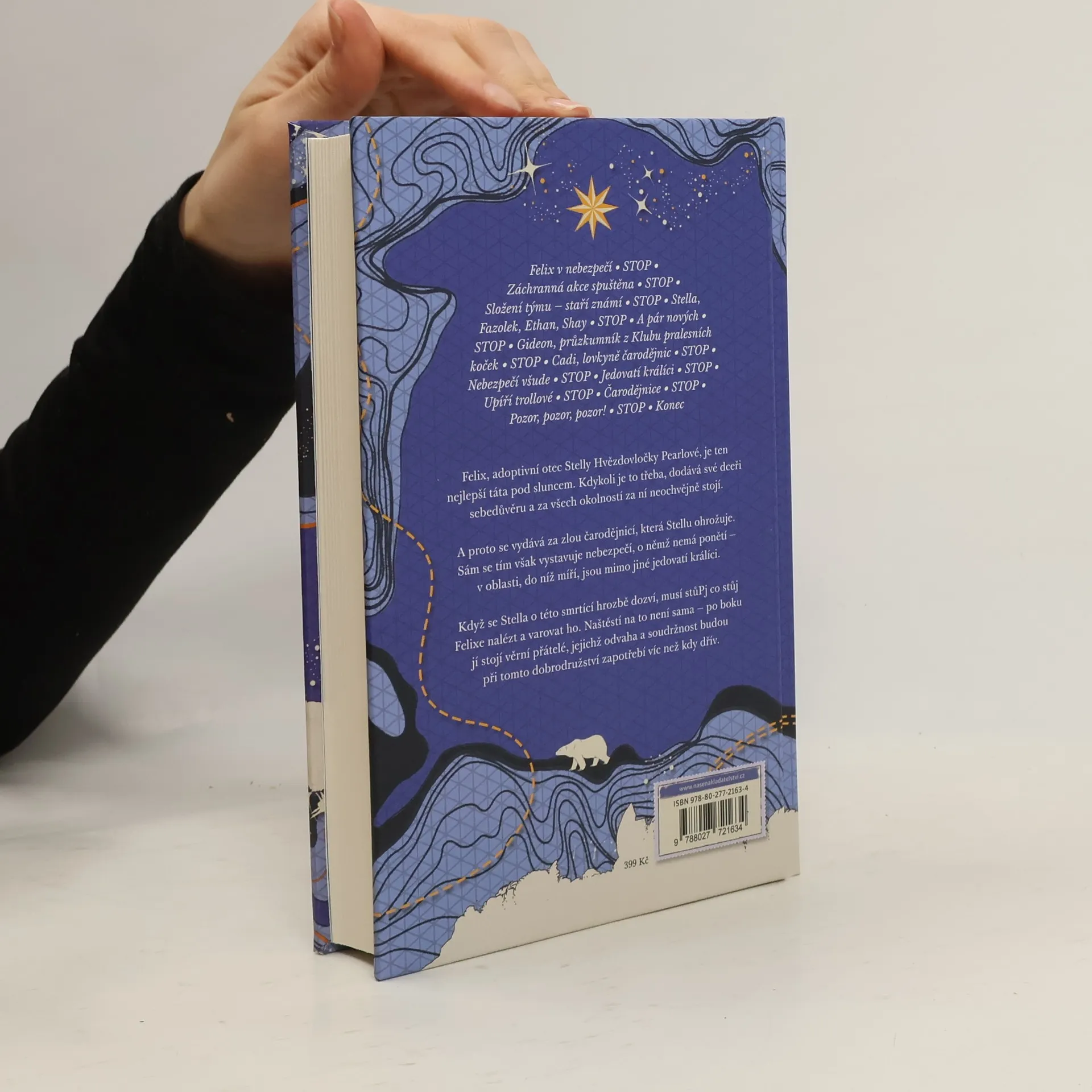 Ve druhém díle průzkumnické série se opět podíváme do mrazivé divočiny. Stella Hvězdovločka Pearlová už se nemůže dočkat, až vyrazí na další výpravu, pak se však přihodí něco zlého – zaútočí na ni zákeřná čarodějnice. Stellin otec Felix to tak nehodlá nechat, takže se vydá na Horu čarodějnic, zatímco dceru nechá doma. Nebyla by to ale Stella, kdyby záhy neshromáždila všechny své kamarády a nevypravila se tam také. V dalším průzkumnickém dobrodružství se opět setkáme se zdravotníkem Fazolkem, nafoukaným kouzelníkem Ethanem i zaříkávačem vlků Shayem. Tentokrát se k nim přidá rovněž Gideon, průzkumník z Klubu pralesních koček, a Cadi, lovkyně čarodějnic. Společně budou muset čelit hádavým houbám, zákeřným strašákům, létajícím žralokům, svítícím piraňám, nenasytným dýním, jedovatým králíkům i několika ježibabám. Dostihnou Felixe dřív, než se mu něco stane? Přemůžou čarodějnici, která Stelle usiluje o život? Z Hory čarodějnic se přece ještě nikdy žádný průzkumník nevrátil…