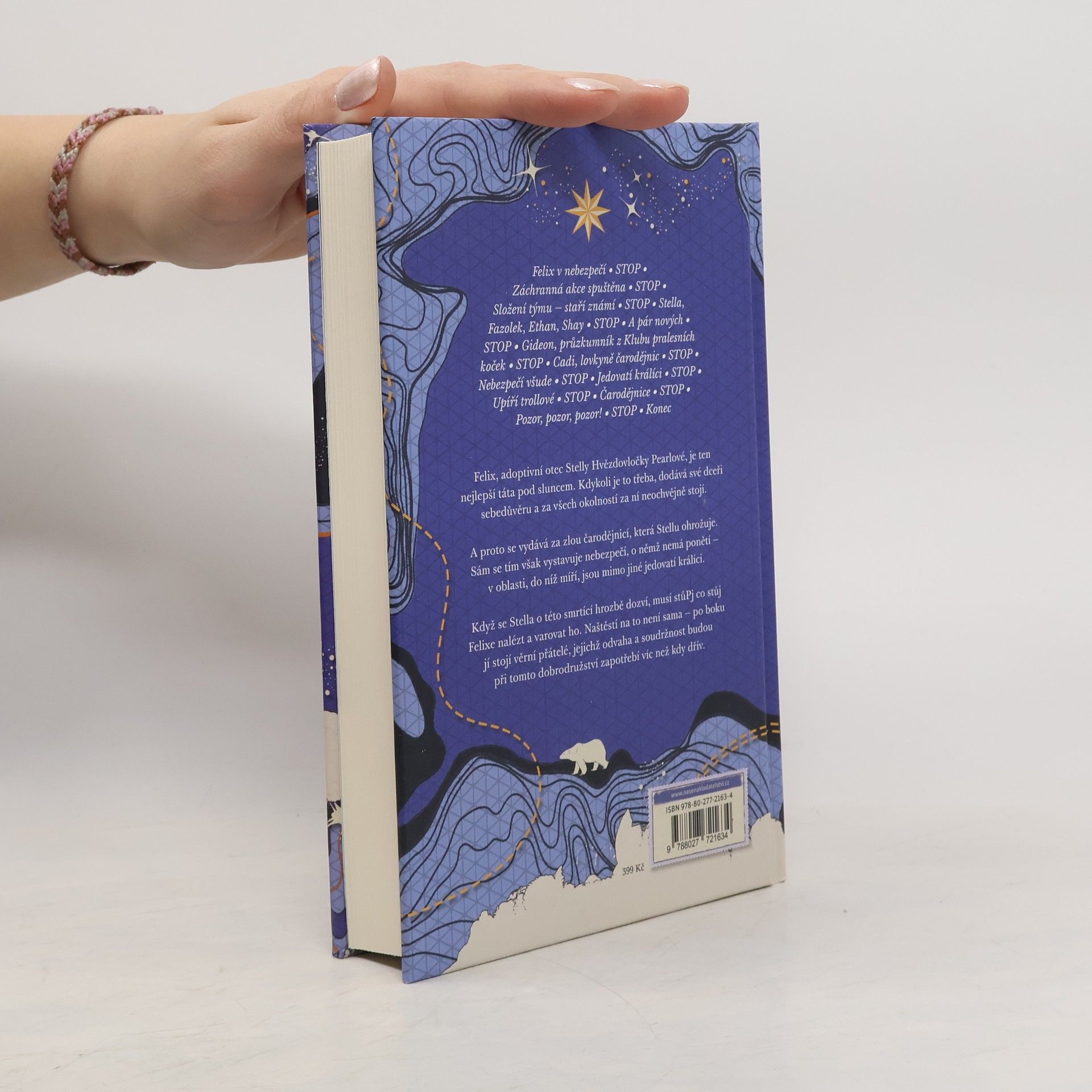 Ve druhém díle průzkumnické série se opět podíváme do mrazivé divočiny. Stella Hvězdovločka Pearlová už se nemůže dočkat, až vyrazí na další výpravu, pak se však přihodí něco zlého – zaútočí na ni zákeřná čarodějnice. Stellin otec Felix to tak nehodlá nechat, takže se vydá na Horu čarodějnic, zatímco dceru nechá doma. Nebyla by to ale Stella, kdyby záhy neshromáždila všechny své kamarády a nevypravila se tam také. V dalším průzkumnickém dobrodružství se opět setkáme se zdravotníkem Fazolkem, nafoukaným kouzelníkem Ethanem i zaříkávačem vlků Shayem. Tentokrát se k nim přidá rovněž Gideon, průzkumník z Klubu pralesních koček, a Cadi, lovkyně čarodějnic. Společně budou muset čelit hádavým houbám, zákeřným strašákům, létajícím žralokům, svítícím piraňám, nenasytným dýním, jedovatým králíkům i několika ježibabám. Dostihnou Felixe dřív, než se mu něco stane? Přemůžou čarodějnici, která Stelle usiluje o život? Z Hory čarodějnic se přece ještě nikdy žádný průzkumník nevrátil…