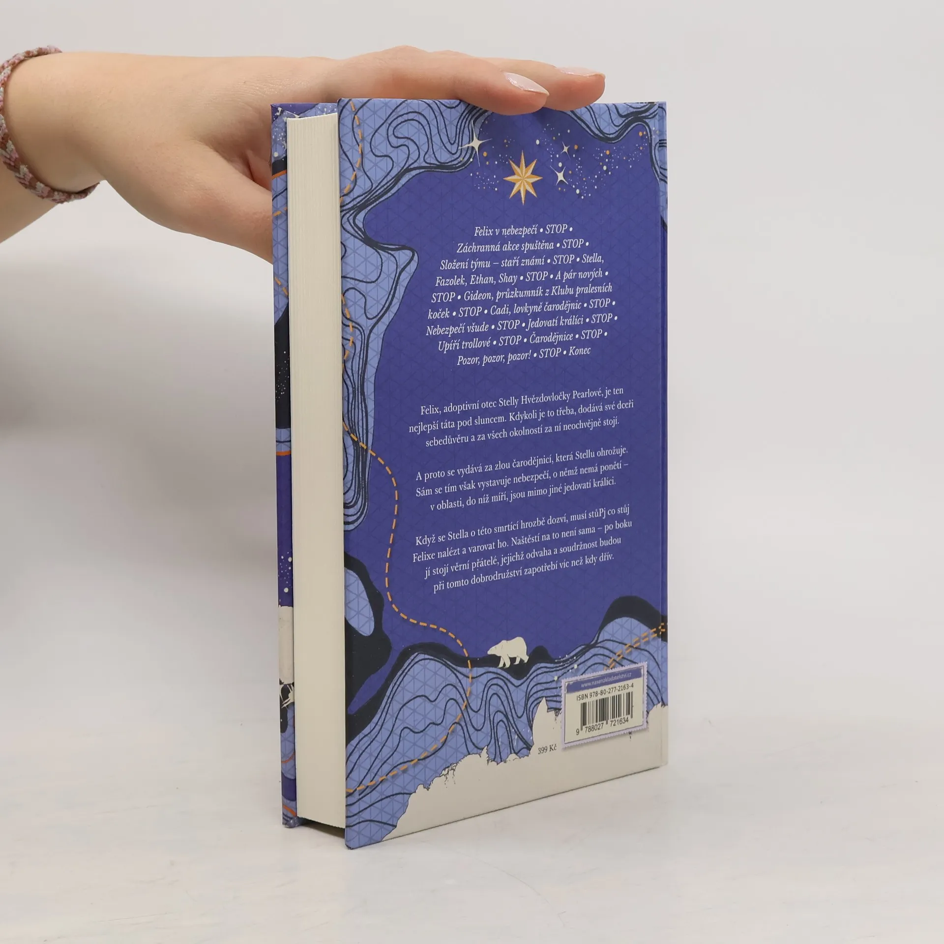 Ve druhém díle průzkumnické série se opět podíváme do mrazivé divočiny. Stella Hvězdovločka Pearlová už se nemůže dočkat, až vyrazí na další výpravu, pak se však přihodí něco zlého – zaútočí na ni zákeřná čarodějnice. Stellin otec Felix to tak nehodlá nechat, takže se vydá na Horu čarodějnic, zatímco dceru nechá doma. Nebyla by to ale Stella, kdyby záhy neshromáždila všechny své kamarády a nevypravila se tam také. V dalším průzkumnickém dobrodružství se opět setkáme se zdravotníkem Fazolkem, nafoukaným kouzelníkem Ethanem i zaříkávačem vlků Shayem. Tentokrát se k nim přidá rovněž Gideon, průzkumník z Klubu pralesních koček, a Cadi, lovkyně čarodějnic. Společně budou muset čelit hádavým houbám, zákeřným strašákům, létajícím žralokům, svítícím piraňám, nenasytným dýním, jedovatým králíkům i několika ježibabám. Dostihnou Felixe dřív, než se mu něco stane? Přemůžou čarodějnici, která Stelle usiluje o život? Z Hory čarodějnic se přece ještě nikdy žádný průzkumník nevrátil…