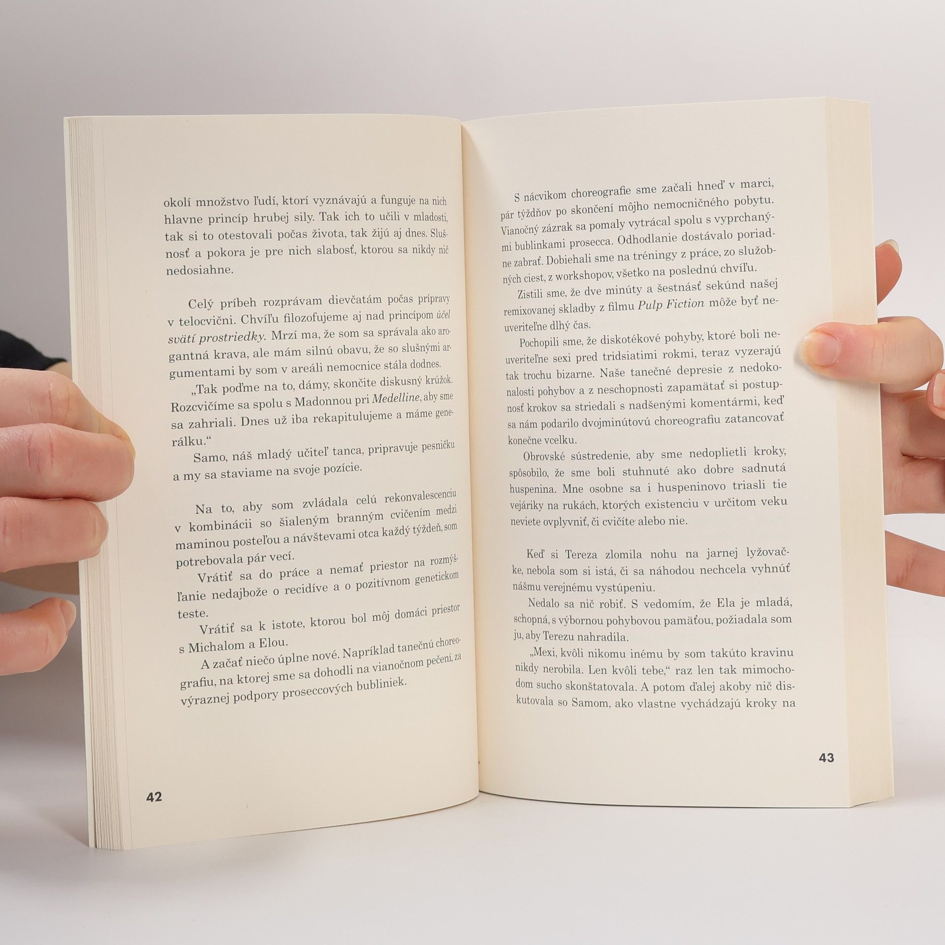 Hana je úspešná manažérka, ktorá má vždy všetko pod kontrolou a práve oslávila svoju 50-tku. Je obklopená milujúcou rodinou, priateľmi a kamarátkami, ktoré pozná od vysokej školy. Jej život je prepísaný do presných excelových tabuliek, až do momentu, kedy do jej života vstúpi radiológ – biatlonista, mladý Lekárnik a absolútne nová emócia. Slnko na jazyku je kniha o ženskom priateľstve, láske dcéry a matky a jednom coming oute. Praskajúce polená akoby mali vlastný divoký tanečný rytmus. Nástojčivý hlas, ktorý vyzýva k akcii. Vybieham na poschodie a v sekunde sa vraciam s Michalovou košeľou. „Túto rybičkovú má najradšej, toto je jeho najobľúbenejšia,“ nečakám, kým to dievčatá odsúhlasia a okamžite otváram krbové dvierka. Tereza je v momente pri mne, natiahne Michalovu košeľu a posmeľuje ma: „Roztrhaj ju najskôr!“ A ja trhám. Najskôr cez chrbát na dve časti, a potom znova a znova. Každá jedna časť separátne putuje k ohňu ako pohanská obeť a mne sa s každým zvukom trhajúcej košele uľavuje. Pár sekúnd a z rybičkovej košele je iba dym. A mne v hlave znie detská chorvátska riekanka: Riba Ribe grize rep, Riba ribe grize rep, Riba ribe … (Ryba rybe hryzie chvost...)