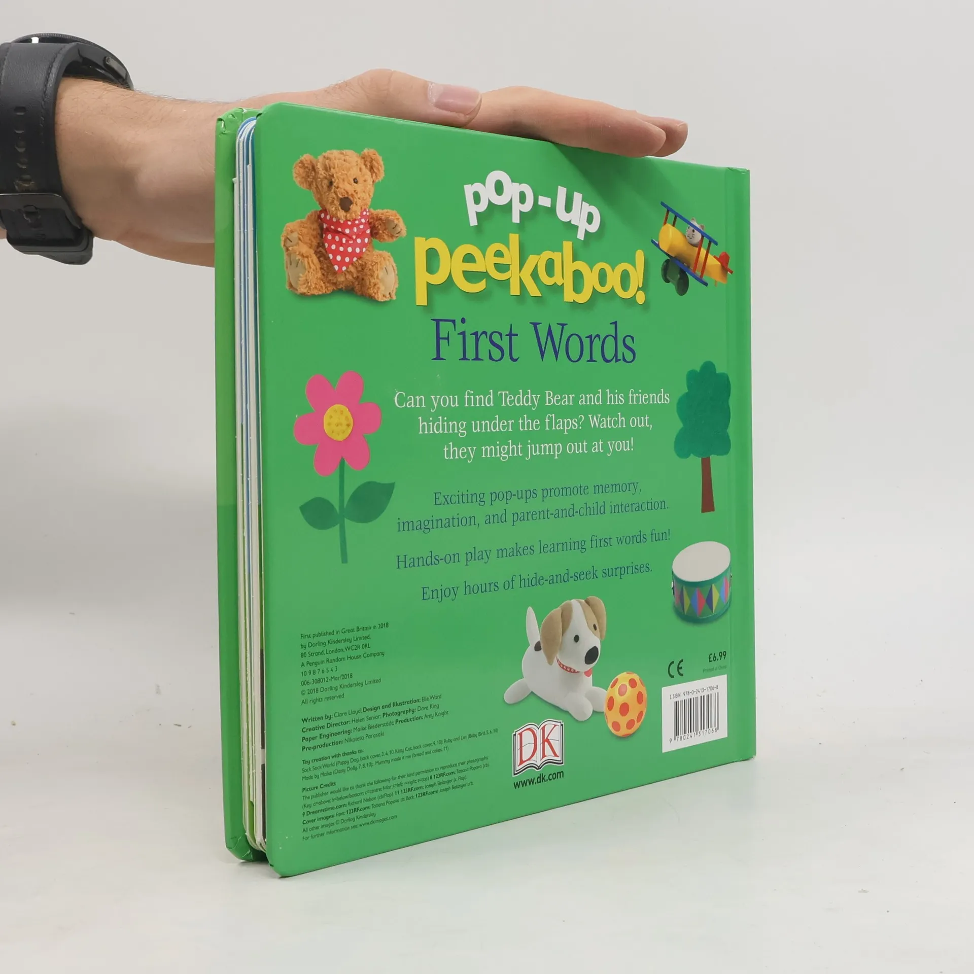 With 5 fun surprises, your baby will love the bright photographs and pop-out characters, perfect for reading aloud and learning first words! Ideal for preschool play, Pop Up Peekaboo! First Words is full of bright pictures and common words from around the home such as teddy, dog, bird, sock, tree, flower, ball, and more. Read the simple rhyming text and lift the flaps to discover what - and who - is hiding underneath. Your little one will love recognising familiar objects on the page. This delightful early-learning book is perfect to read together and the surprise pop ups will keep your little one entertained. DK's Pop-up Peekaboo! series has been shortlisted for the Best Preschool Reading Range in The Progressive Preschool Awards 2018