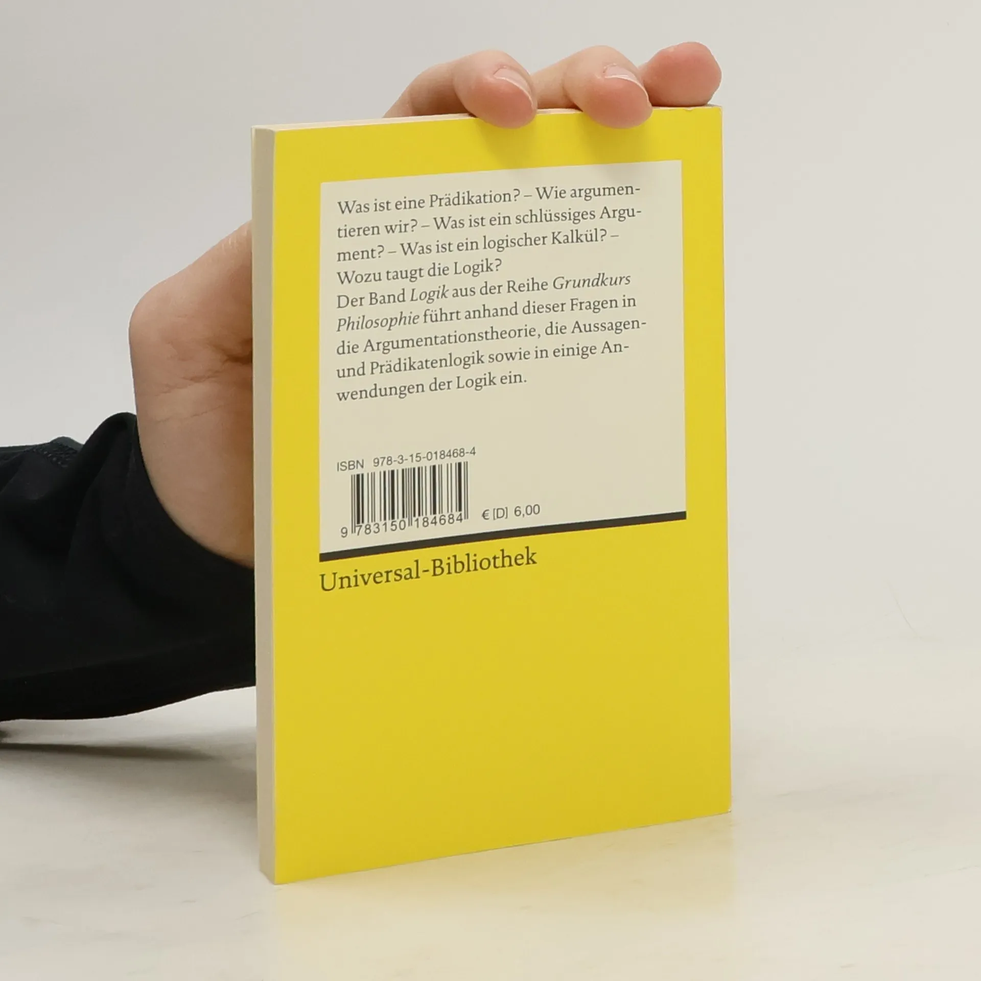 Für alle, die sich gründlich in die Philosophie einarbeiten wollen: Die Reihe präsentiert Begriffe und Positionen aller wichtigen philosophischen Disziplinen in knapper, möglichst verständlicher Form. Die Teilbereiche werden systematisch eingeführt, bauen aufeinander auf und werden durch zahlreiche Beispiele erläutert. Am Ende jedes Bandes werden Übungsaufgaben gestellt. Band 1: Prädikations- und Argumentationstheorie - Aussagen- und Prädikatenlogik - Anwendungen der Logik. Wie argumentieren wir? Was ist ein schlüssiges Argument? Was ist ein logischer Kalkül? Wozu taugt die Logik?