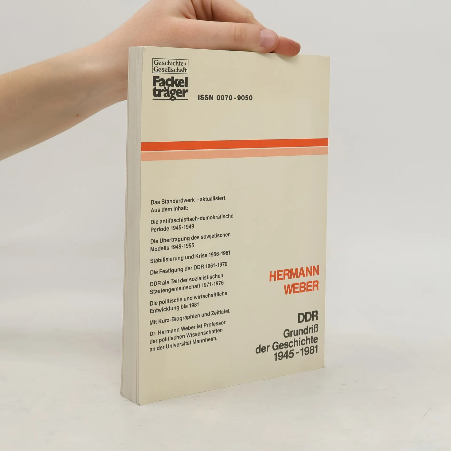 Hermann Weber macht klar, dass die DDR, die fast so lange existierte wie das deutsche Kaiserreich, keineswegs nur als Nebenprodukt des Kalten Krieges angesehen werden darf. Die seit den 1990er Jahren zuganglichen Akten in den Archiven der ehemaligen DDR bieten neue Informationen über den Gang der Ereignisse und ihre Hintergrunde. Im Forschungs- und Literaturteil gibt der Autor zudem einen Überblick uber die Flut an Literatur, die seit dem Ende des ostdeutschen Staates entstanden ist."