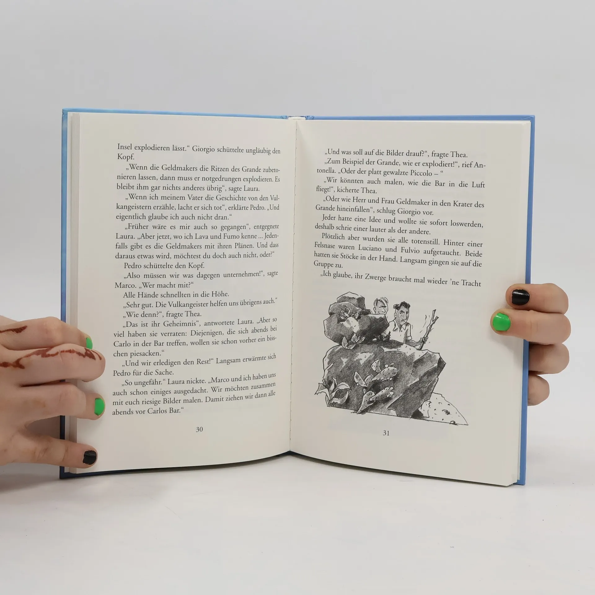 Die Kinder der Insel Rossa verbünden sich mit den Vulkangeistern, um zu verhindern, dass durch einen Hotelbau ihre bisher weitgehend vom Tourismus verschont gebliebene Heimat gefährdet wird. Eine gruselige Demonstration vertreibt die gierigen Investoren.