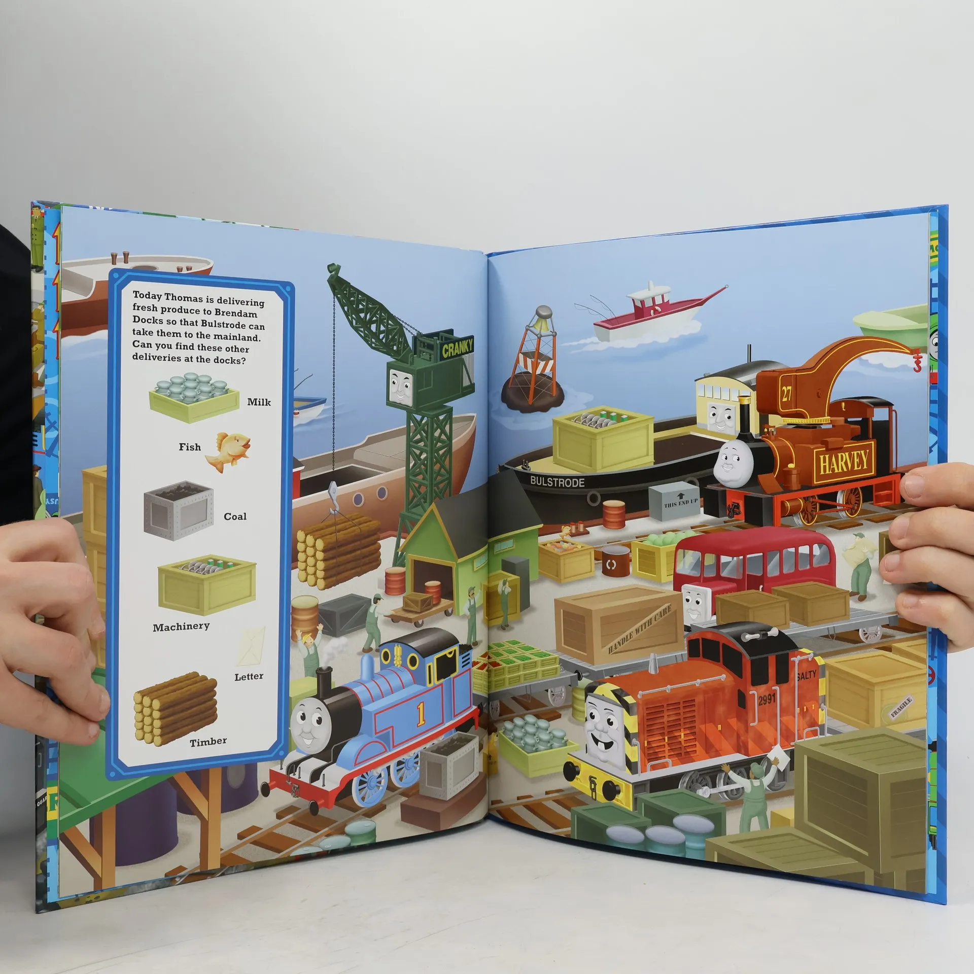 Eight busy scenes take the reader to look and find challenges as Thomas, Percy, James, and the other engines get their instructions and complete their jobs
