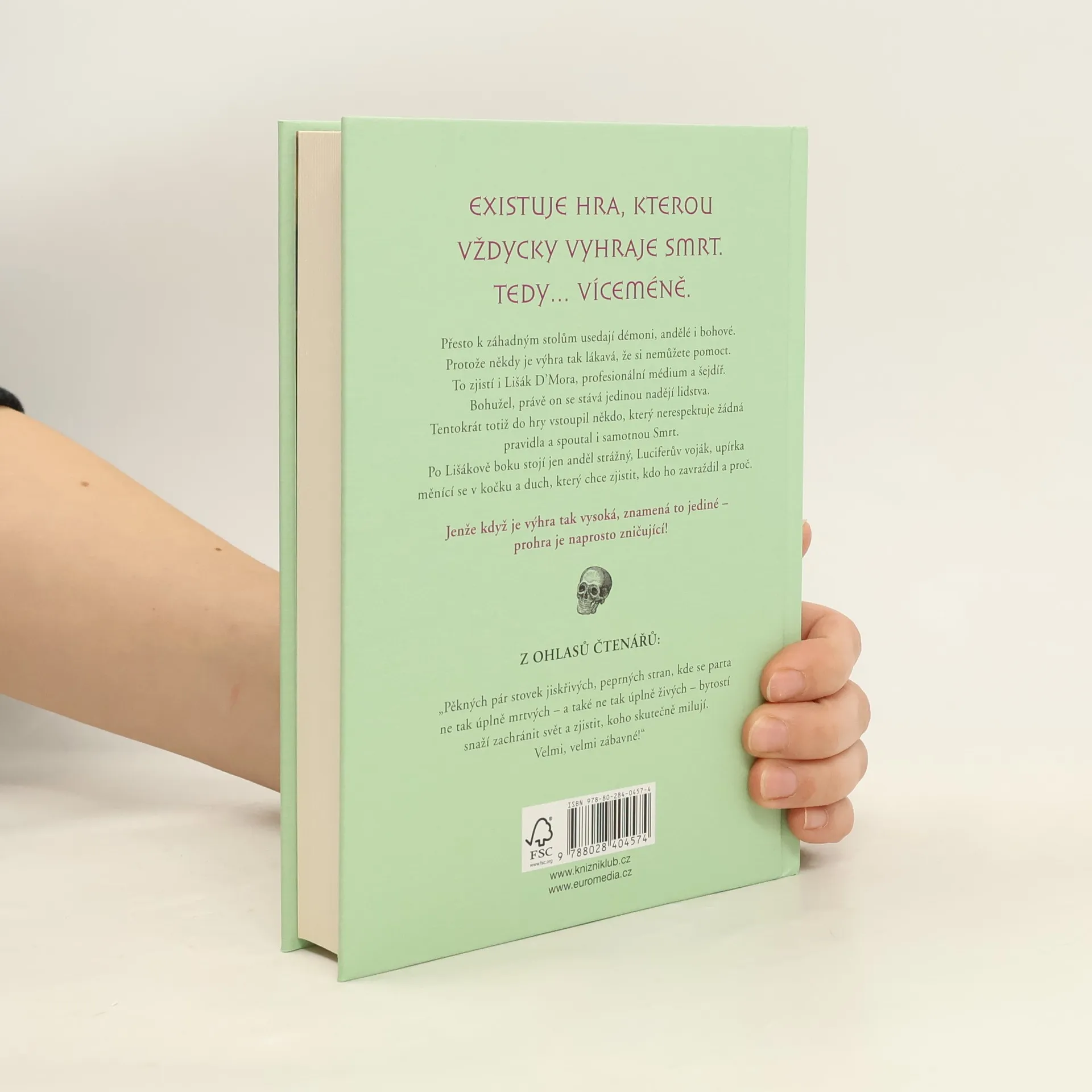 Existuje hra, kterou vždycky vyhraje smrt. Tedy… Víceméně. Přesto k záhadným stolům usedají démoni, andělé i bohové. Protože někdy je výhra tak lákavá, že si nemůžete pomoct. To zjistí i Lišák D’Mora, profesionální médium a šejdíř. Bohužel, právě on se stává jedinou nadějí lidstva. Tentokrát totiž do hry vstoupil někdo, který nerespektuje žádná pravidla a spoutal i samotnou Smrt. Po Lišákově boku stojí jen anděl strážný, Luciferův voják, upírka měnící se v kočku a duch, který chce zjistit, kdo ho zavraždil a proč. Jenže když je výhra tak vysoká, znamená to jediné – prohra je naprosto zničující!
