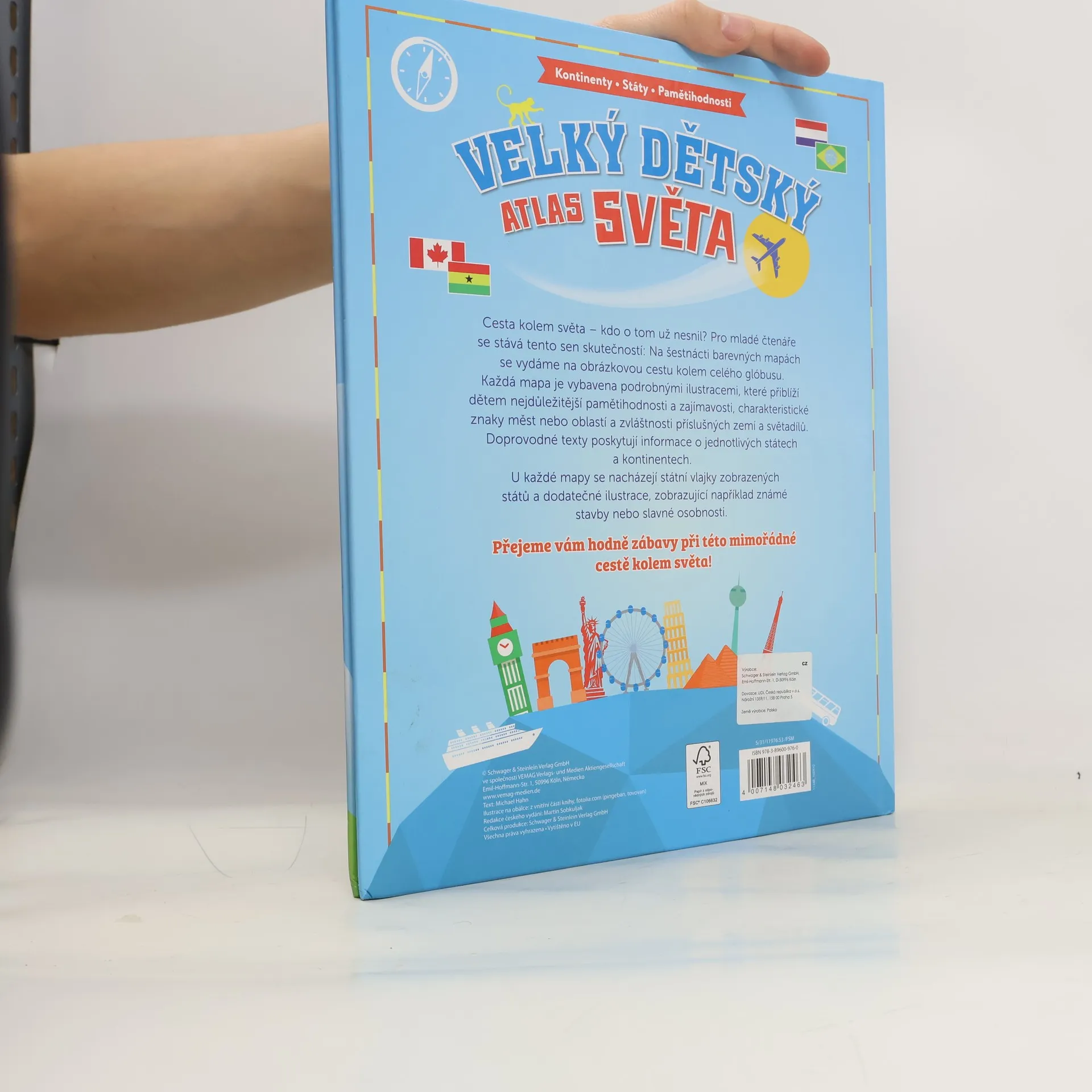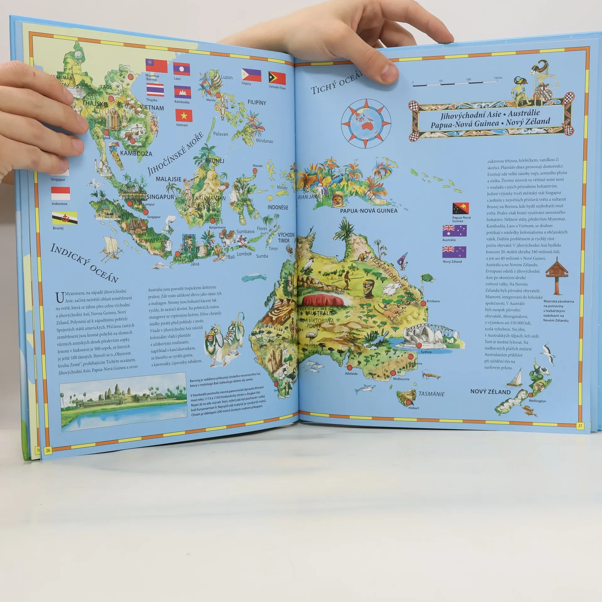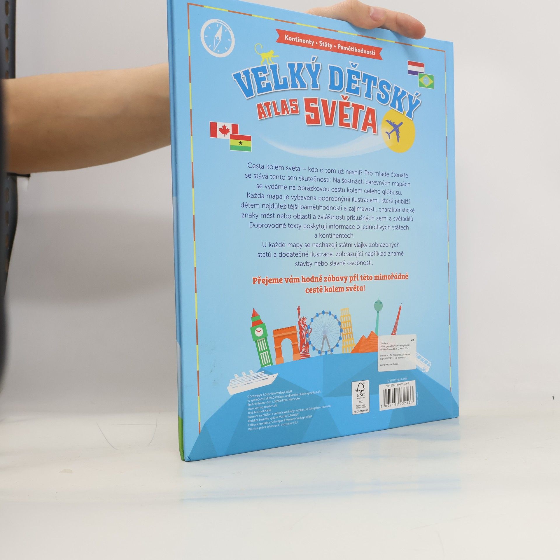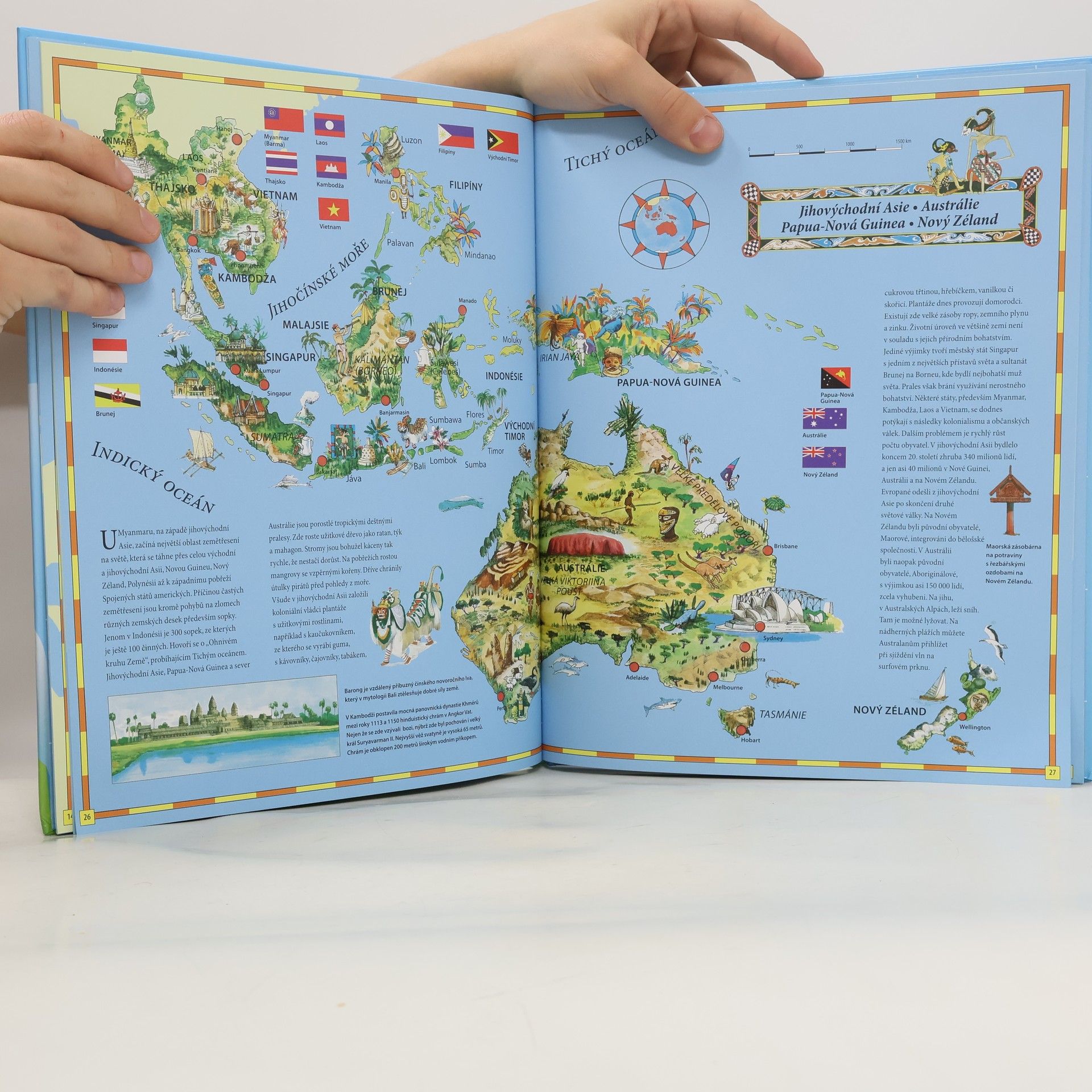 Dětský atlas světa - 16 barevných map s podrobnými ilustracemi , které přiblíží dětem nejrůznější pamětihodnosti a zajímavosti , charakteristické znaky měst nebo oblastí a zvláštnosti příslušných zemí a světadílů. Doprovodné texty poskytují informace o jednotlivých státech a kontinentech. U každého mapy se nacházejí státní vlajky zobrazených států a dodatečné ilustrace , zobrazující např.známé stavby nebo slavné osobnosti