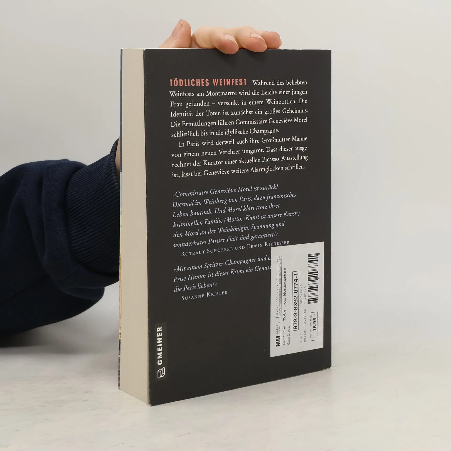 Während des beliebten Weinfests am Montmartre wird die Leiche einer jungen Frau gefunden - versenkt in einem Weinbottich. Die Identität der Toten ist zunächst ein großes Geheimnis. Die Ermittlungen führen Commissaire Geneviève Morel schließlich bis in die idyllische Champagne. In Paris wird derweil auch ihre Großmutter Mamie von einem neuen Verehrer umgarnt. Dass dieser ausgerechnet der Kurator einer aktuellen Picasso-Ausstellung ist, lässt bei Geneviève weitere Alarmglocken schrillen.