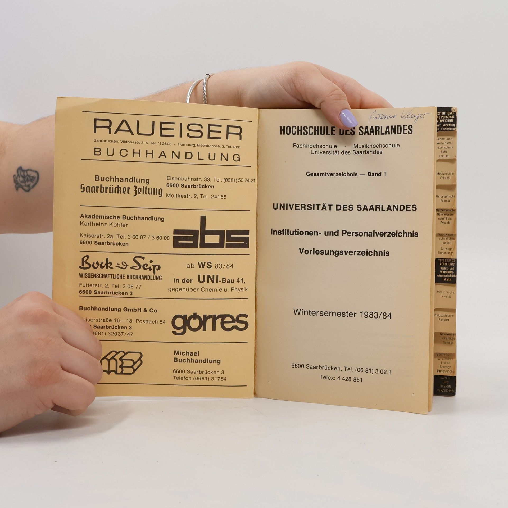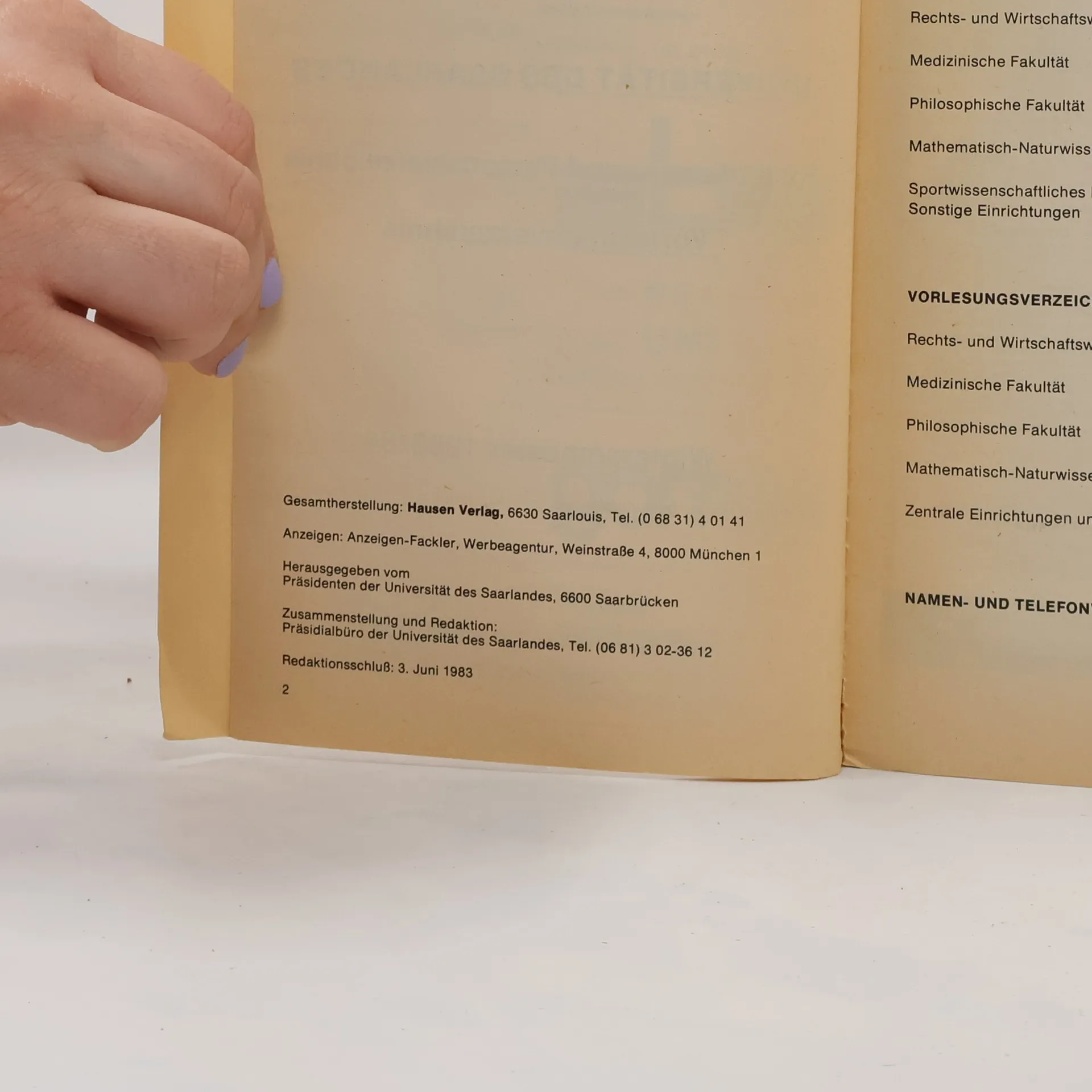 Universität des Saarlandes. Vorlesungsverzeichnis 83/84, Autorenkollektiv