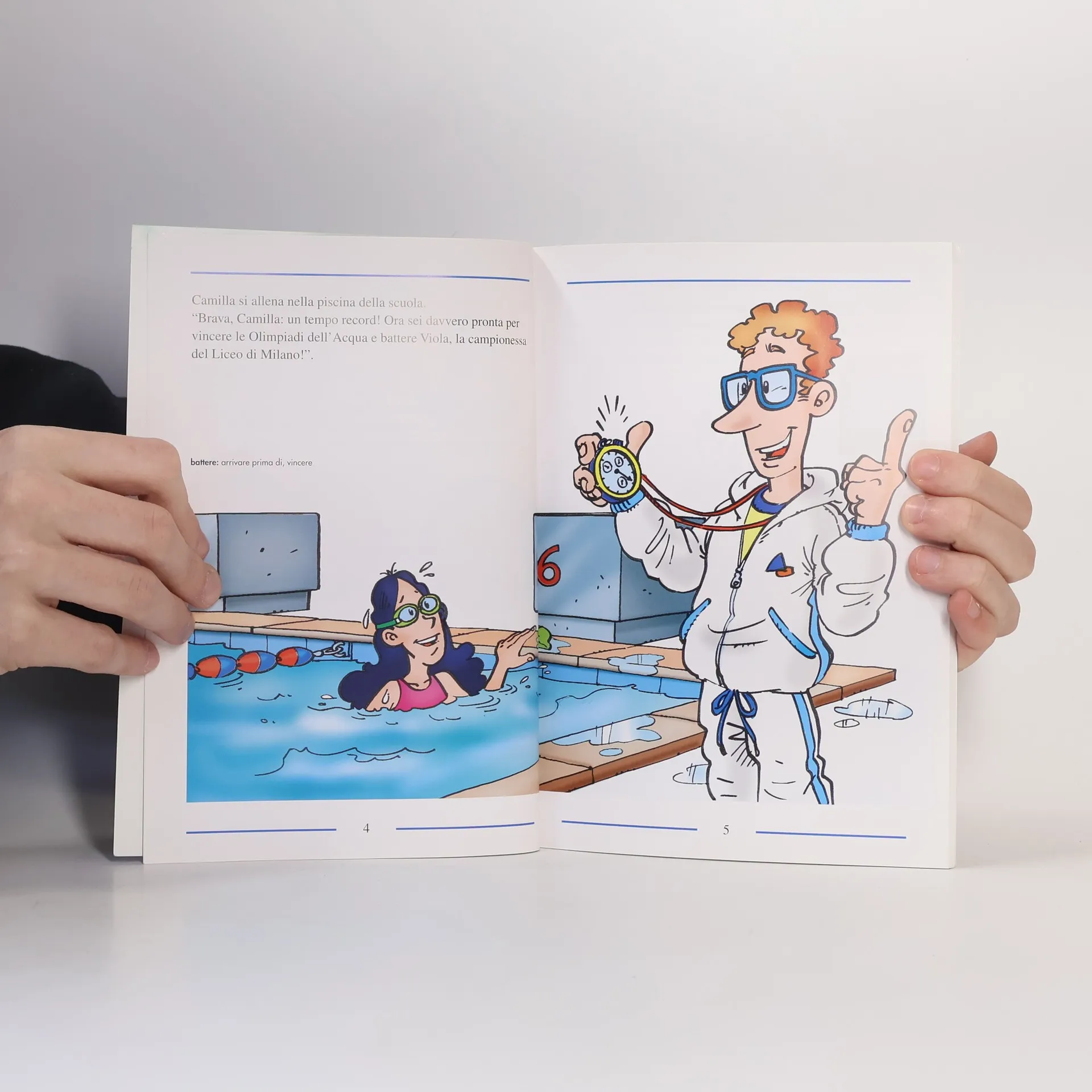 Nico, Camilla e il loro amico Guglielmo partecipano alle Olimpiadi dell'Acqua. Ma durante le prove succedono molte cose strane : i costumi da bagno scompaiono, uomini mesteriosi si incontrano... aiuta i gemelli a risolvere il mistero ! Troverai tanti giochi divertenti, tanti amici e una bella storia da leggere : il modo più simpatico per migliorare il tuo italiano.