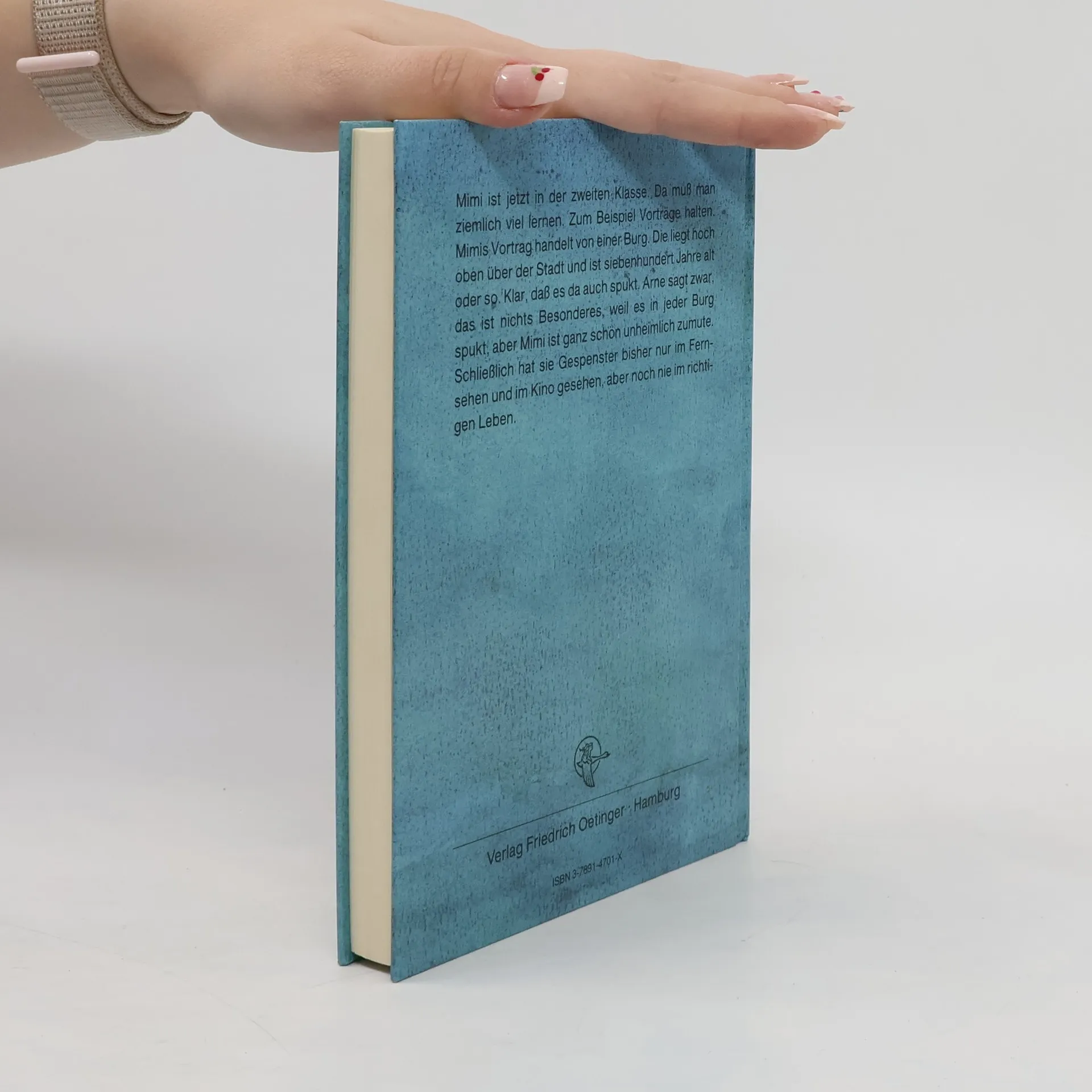 Mimi hat ihr erstes Schuljahr gemeistert und geht jetzt schon in die zweite Klasse. Da muss man auch schon Vorträge halten und Mimis Vortrag handelt von einer alten Burg. Wie es sich für eine richtige Burg gehört, spukt es dort natürlich auch. Mimi findet das ganz schön unheimlich, aber Arne sagt, das sei vollkommen normal. Ob die beiden ein richtiges Gespenst treffen werden? Biografische Anmerkung Viveca Lärn wurde 1944 als Tochter des Journalisten und Zeichners Hubert Lärn in Göteborg geboren. Nach einer Karriere als Journalistin bei verschiedenen schwedischen Zeitungen beschloss sie im Jahr 1983, sich vollständig dem Schreiben von Büchern zu widmen. Seit ihrem ersten Kinderbuch aus dem Jahr 1975 hat sie insgesamt 40 Kinderbücher veröffentlicht. Berühmt wurde sie vor allem durch die Mimmi-Buchserie, die mit dem Buch "Mimmi und das Monster im Schrank" eingeleitet wurde. Viveca Lärn wurde mit vielen Literaturpreisen ausgezeichnet, darunter der Astrid Lindgren-Preis, die Nils Holgersson-Plakette und Expressens Heffaklumb.