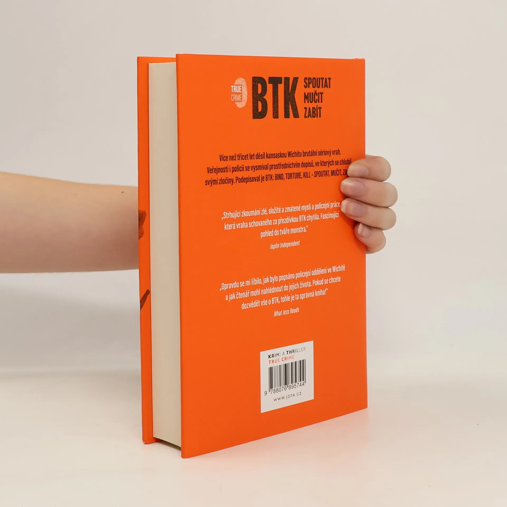 Sériový vrah ze sousedství Dennis Rader. Více než třicet let děsil kansaskou Wichitu brutální sériový vrah. Veřejnosti i policii se vysmíval prostřednictvím dopisů, ve kterých se chlubil svými zločiny. Podepisoval je zkratkou BTK. Celých jednatřicet let se městem Wichita v americkém státě Kansas plížilo monstrum, krvežíznivý sériový vrah, který sám sobě zkráceně přezdíval BTK – „bind, torture, kill“ – spoutat, mučit, zabít. Mučil a zabíjel muže, ženy a děti, dlouhá desetiletí se vyhýbal dopadení a svými hrůznými činy se vychloubal v médiích. Když ho konečně chytili, celou zemi šokovalo, že vrahem je Dennis Rader: přátelský soused, oddaný manžel, nápomocný táta ze skautu a respektovaný příslušník církevní komunity. Kniha BTK: Spoutat, mučit, zabít z pera čtyř oceňovaných kriminálních reportérů, kteří o případu psali více než dvacet let, je tím nejintimnějším a nejúplnějším vylíčením hrůzostrašného případu těmi, kdo se od samého počátku nacházeli ve středu dění. S využitím nově zveřejněných dokumentů, důkazů a informací a díky nevídané spolupráci s příbuznými vraha i jeho obětí se autorům podařilo složit všechny dílky této strašlivé skládačky dohromady.