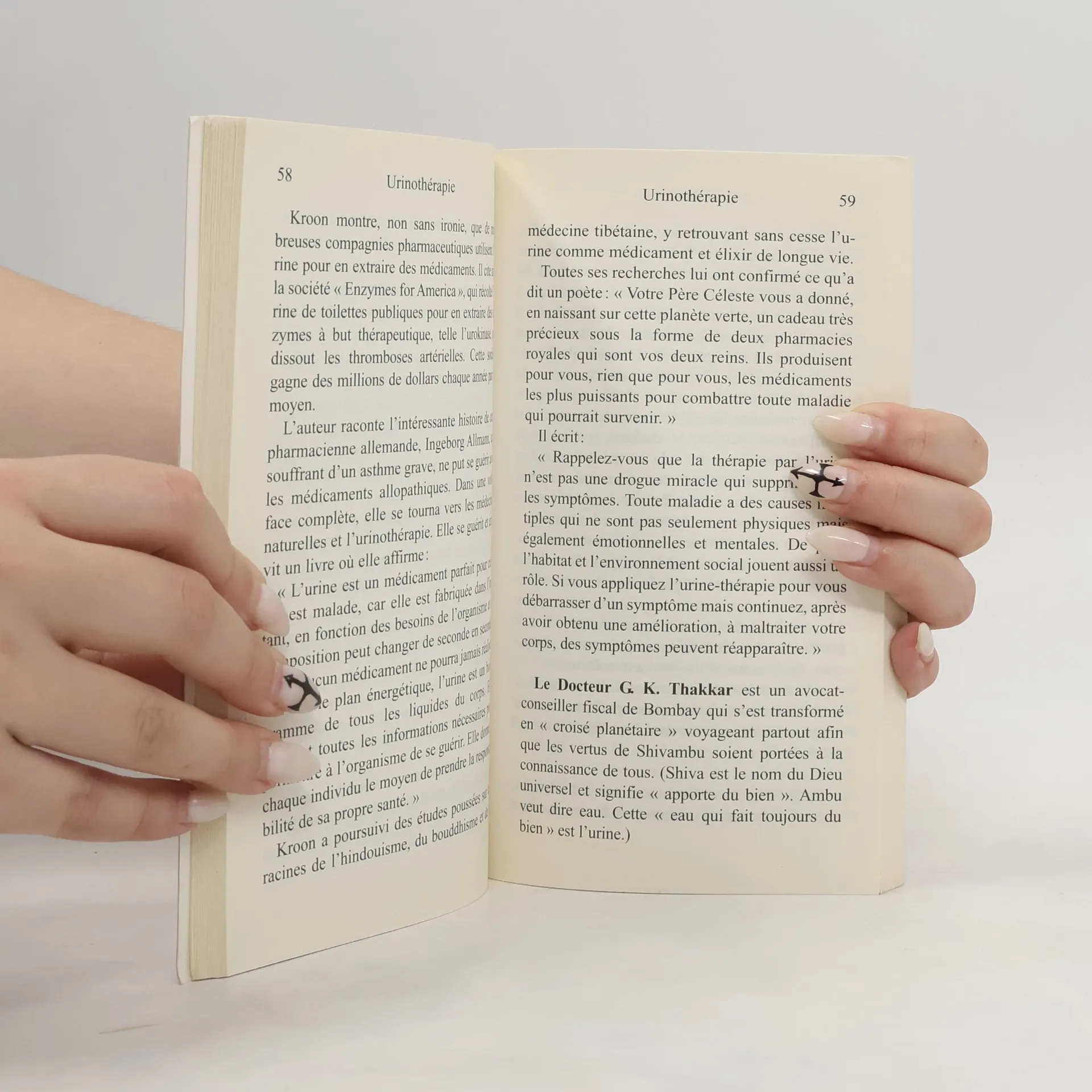 Urinothérapie . Depuis des millénaires, l'urinothérapie (amaroli) a montré sa prodigieuse efficacité, et des centaines de travaux scientifiques lui ont été consacrés. Pour notre époque menacée par l'abus de chimie, cette thérapie, qui est déjà pratiquée avec succès par des millions de personnes dans le monde, peut devenir un des piliers d'une véritable « écologie intérieure ». Découvrez que votre corps est porteur d'une sagesse infiniment plus grande que celle de tous les médecins et scientifiques et guérissez de tous vos maux !