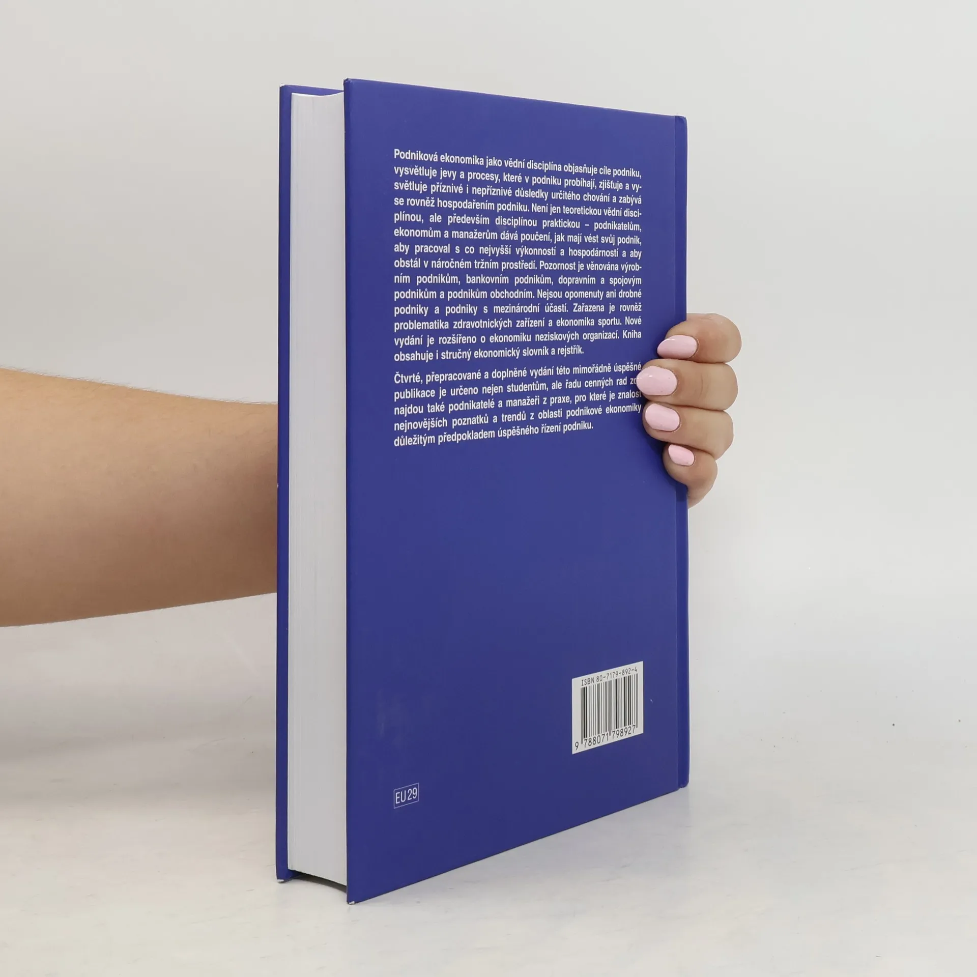 Podniková ekonomika jako vědní disciplína objasňuje cíle podniku, vysvětluje jevy a procesy, které v podniku probíhají, zjišťuje a vysvětluje příznivé i nepříznivé důsledky určitého chování a zabývá se rovněž hospodařením podniku. -není jen teoretickou vědní disciplínou, ale především disciplínou praktickou - podnikatelům, ekonomům a manažerům dává ponaučení, jak mají vést svůj podnik, aby pracoval s co nejvyšší výkonností a hospodárností a aby obstál v náročnějším tržním prostředí. Pozornost je věnována výrobním podnikům, bankovním podnikům, dopravním a spojovým podnikům a podnikům obchodním. Nejsou opomenuty ani drobné podniky a podniky s mezinárodní účastí. Zařazena je rovněž problematika zdravotnických zařízení a ekonomika sportu. Nové vydání je rozšířeno o ekonomiku neziskových organizací. Kniha obsahuje i stručný ekonomický slovník a rejstřík.