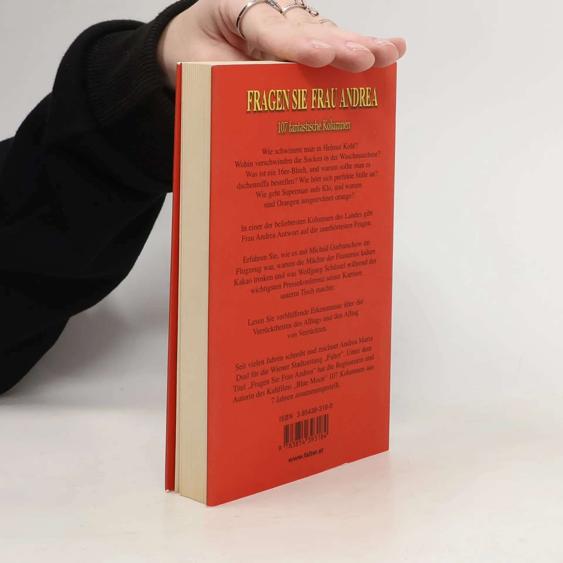 Das ultimative Briefkastentanten-Buch! Frau Andrea gibt in 107 Kolumnen Antwort auf die unerhörtesten Fragen. Das beliebte Frage- und Antwortspiel in seiner intelligentesten und witzigsten Form.Neben vielen anderen Talenten - Zeichnen, Filmemachen (zuletzt „Blue Moon”) - ist Andrea Maria Dusl auch eine begnadete Briefkastentante. In ihrer seit 1996 wöchentlich im Falter erscheinenden Kolumne „Fragen Sie Frau Andrea” setzt sich Comandantina Dusilova mit den Verrücktheiten des Alltags und dem Alltag von Verrückten auseinander.Was passiert mit den verschwundenen Socken in der Waschmaschine? Wie verhält sich Michail Gorbatschow im Flugzeug? Warum trinken die Mächte der Finsternis kalten Kakao? Das sind einige der Fragen, denen sich Andrea Maria Dusl ausführlich und mit gebotenem Ernst widmet.