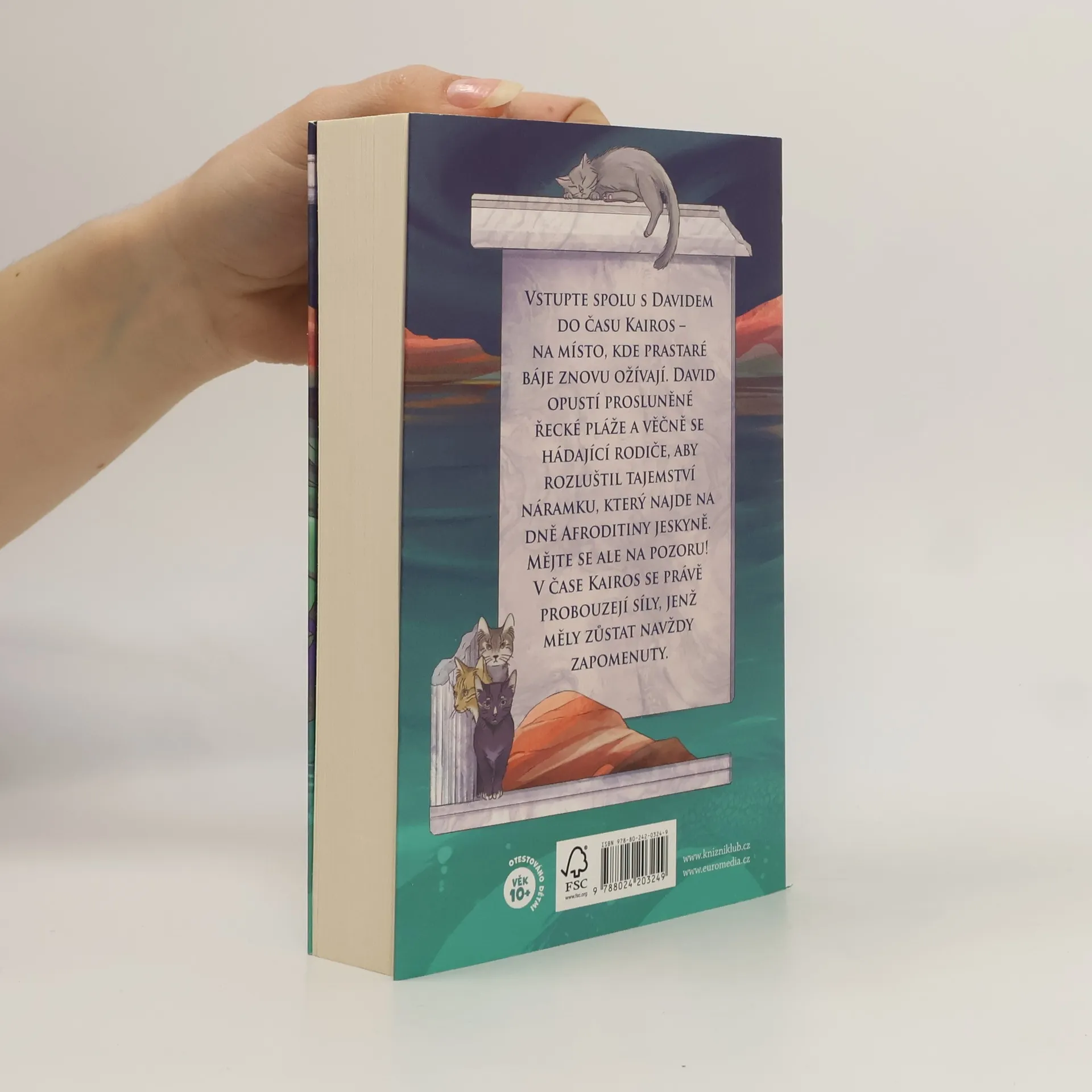 Vstupte spolu s Davidem do času Kairos – na místo, kde prastaré báje znovu ožívají. David opustí prosluněné řecké pláže i věčně se hádající rodiče, aby rozluštil tajemství náramku, který najde na dně Afroditiny jeskyně. Mějte se ale na pozoru! V čase Kairos se právě probouzí síly, které měly zůstat navždy zapomenuty.