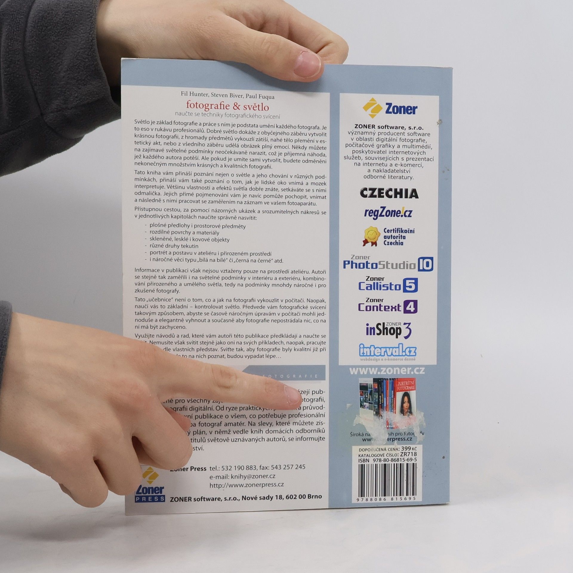 Světlo je základem fotografie a jeho ovládnutí je uměním každého fotografa. Zajímavé světelné podmínky mohou vzniknout náhodou, ale pokud je dokážete vytvořit, odmění vás krásnými snímky. Publikace přináší hluboké znalosti o světle a jeho chování v různých podmínkách, a také o tom, jak je vnímá lidské oko a jak je interpretuje mozek. Pomůže vám pochopit vlastnosti a efekty světla, které znáte od dětství, a naučí vás, jak s nimi pracovat při fotografování. Srozumitelně a pomocí ukázek se naučíte správně nasvítit různé objekty a situace, včetně složitějších scén jako „bílá na bílé“ či „černá na černé“. Kniha se nezaměřuje pouze na ateliérové podmínky, ale také na kombinaci přirozeného a umělého světla v interiérech a exteriérech, což představuje výzvu i pro zkušené fotografy. Tento průvodce vás naučí kontrolovat světlo a minimalizovat potřebu úprav v počítači, což povede k kvalitnějším fotografiím již při jejich pořízení. Využijte rady autorů a pracujte se světlem podle svých představ, aby vaše snímky vynikly.