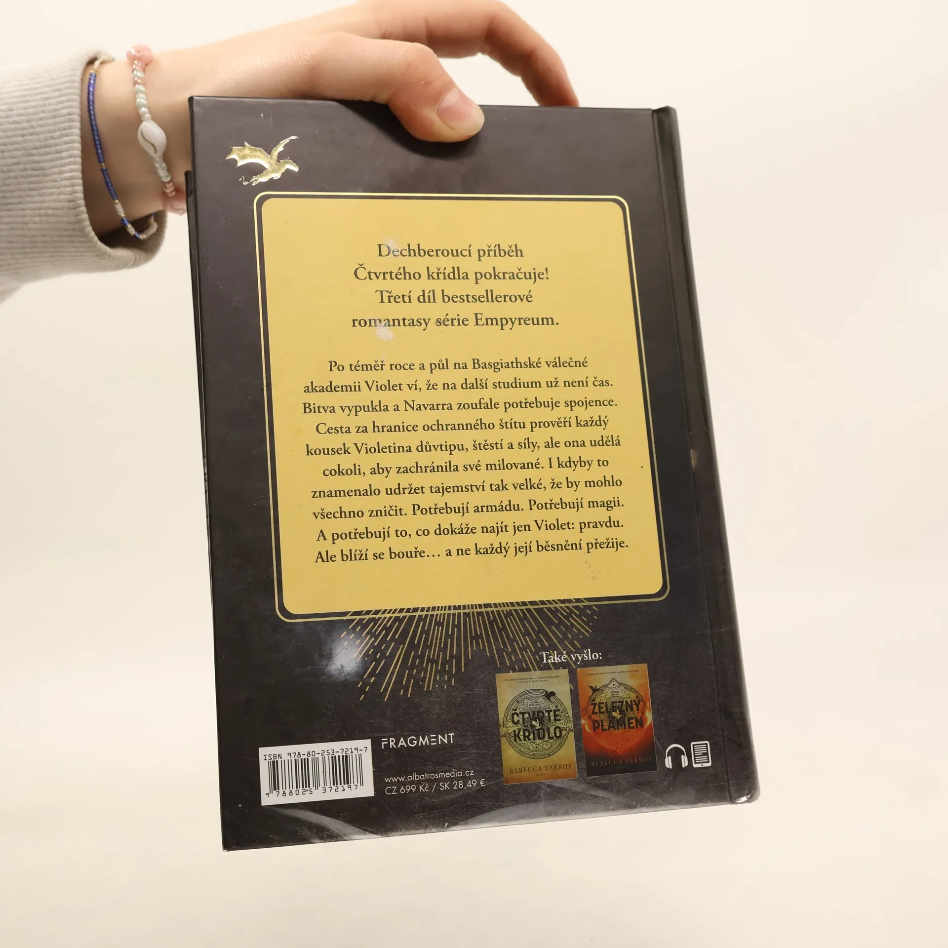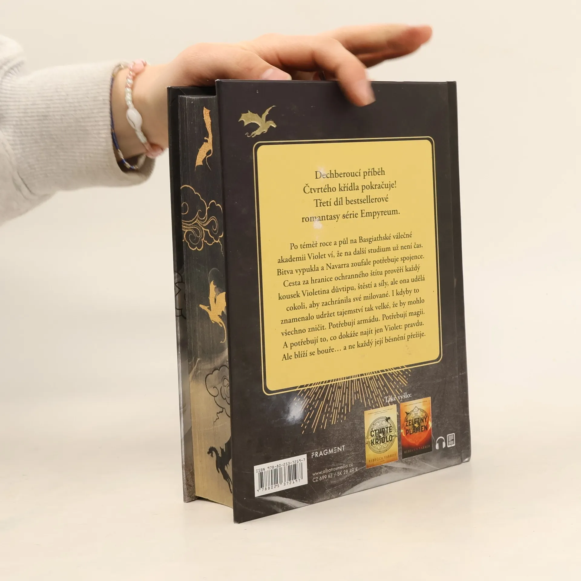 Dechberoucí příběh Čtvrtého křídla pokračuje! Třetí díl bestsellerové romantasy série Empyreum. Po téměř roce a půl na Basgiathské válečné akademii Violet ví, že na další studium už není čas. Bitva vypukla a Navarra zoufale potřebuje spojence. Cesta za hranice ochranného štítu prověří každý kousek Violetina důvtipu, štěstí a síly, ale ona udělá cokoli, aby zachránila své milované. I kdyby to znamenalo udržet tajemství tak velké, že by mohlo všechno zničit. Potřebují armádu. Potřebují magii. A potřebují to, co dokáže najít jen Violet: pravdu. Ale blíží se bouře… a ne každý její běsnění přežije.