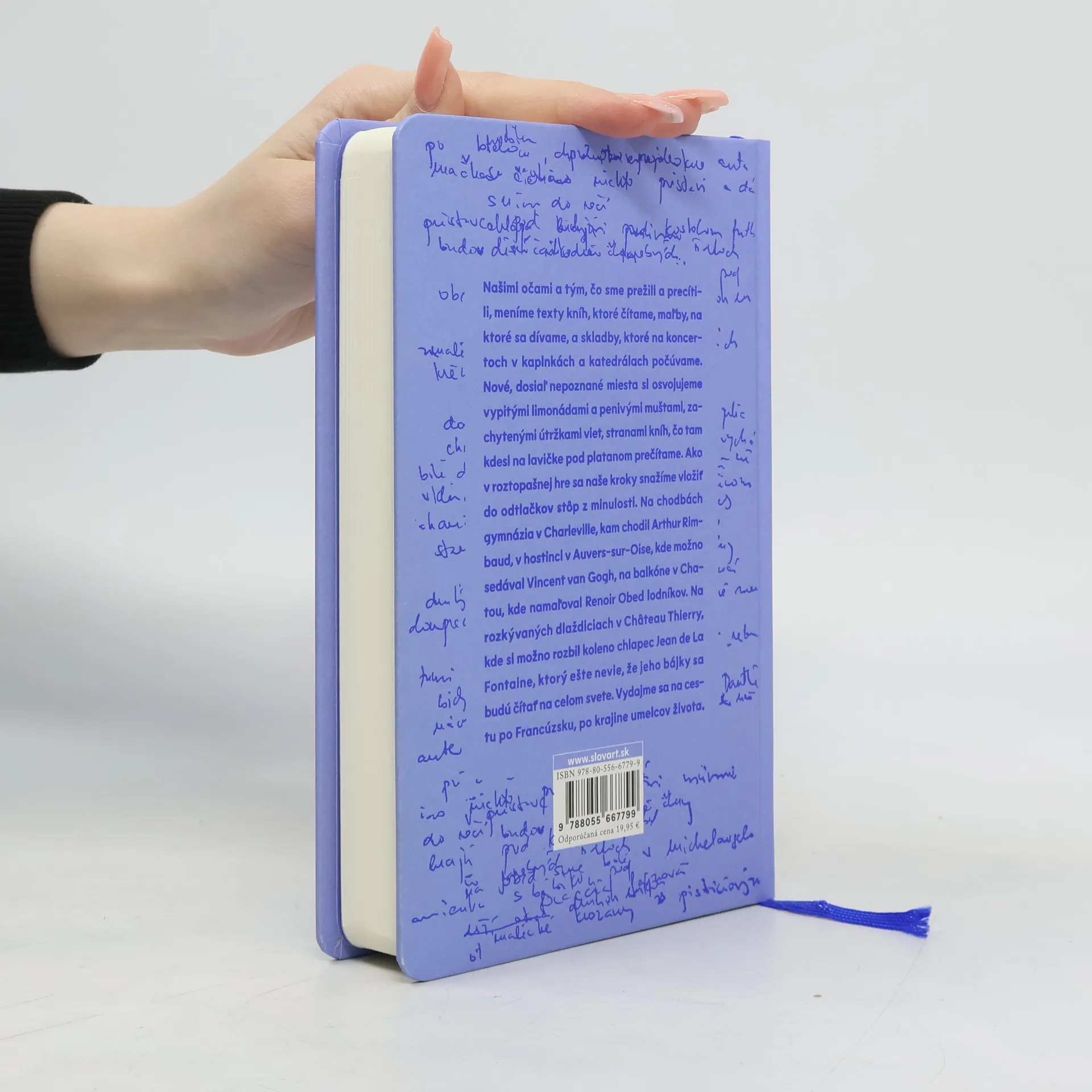 Našimi očami a tým, čo sme prežili a precítili, meníme texty kníh, ktoré čítame, maľby, na ktoré sa dívame, a skladby, ktoré na koncertoch v kaplnkách a katedrálach počúvame. Nové, dosiaľ nepoznané miesta si osvojujeme vypitými limonádami a penivými muštami, zachytenými útržkami viet, stranami kníh, čo tam kdesi na lavičke pod platanom prečítame. Ako v roztopašnej hre sa usilujeme vložiť svoje kroky do odtlačkov stôp z minulosti. Na chodbách gymnázia v Charleville, kam chodil Arthur Rimbaud, v hostinci v Auvers-sur-Oise, kde možno sedával Vincent van Gogh, na balkóne v Chatou, kde namaľoval Renoir Obed lodníkov. Na rozkývaných dlaždiciach v Château-Thierry, kde si možno rozbil koleno chlapec Jean de La Fontaine, ktorý ešte nevie, že jeho bájky sa budú čítať na celom svete. Vydajme sa na cestu po Francúzsku – po krajine umelcov života.