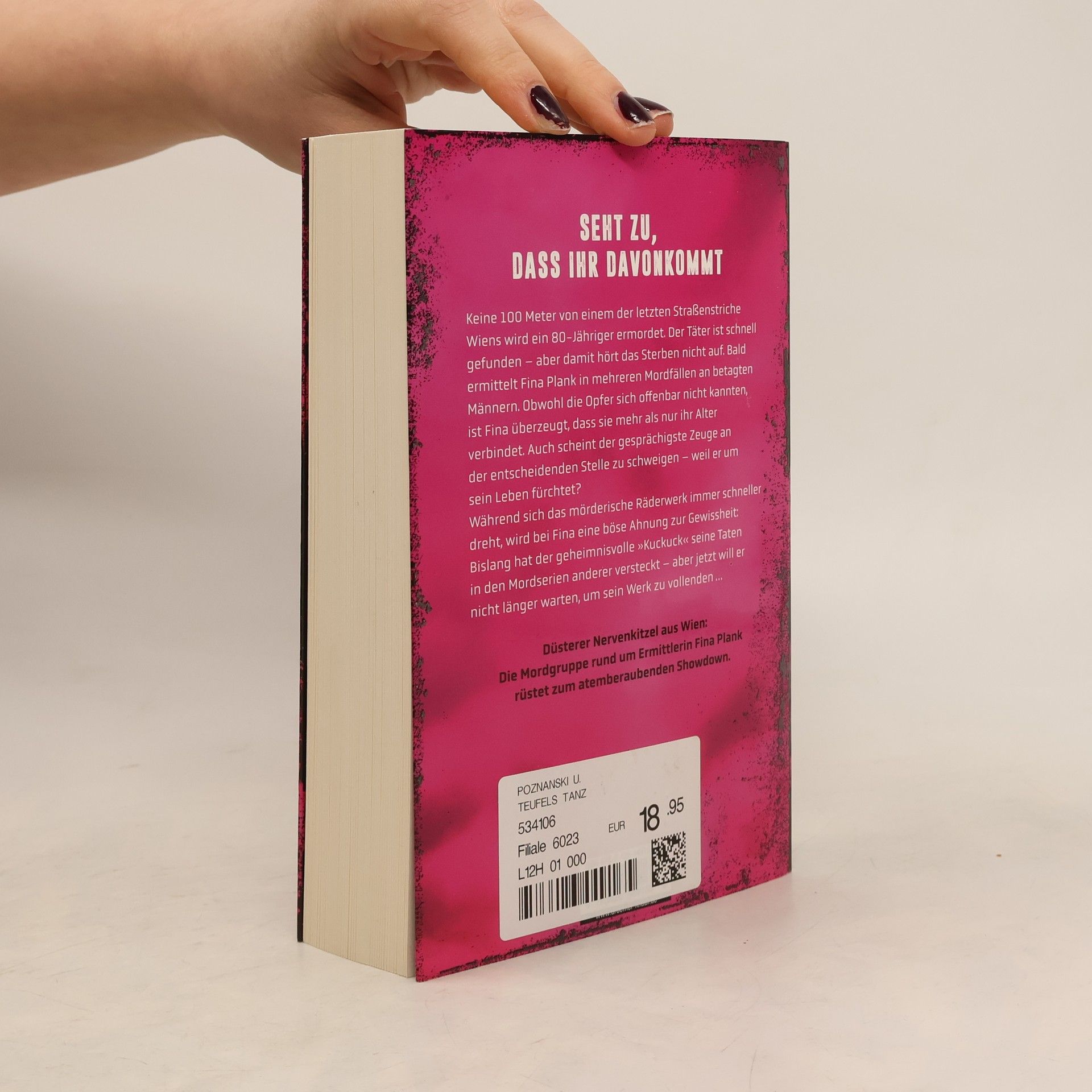 Düsterer Nervenkitzel aus »Teufels Tanz« ist der 3. Band von Ursula Poznanskis Krimi-Reihe um die Wiener Ein Mord am Straßenstrich zwingt den geheimnisvollen »Kuckuck« dazu, endlich sein wahres Gesicht zu zeigen.Keine 100 Meter von einem der letzten Straßenstriche Wiens wird ein 80-Jähriger ermordet. Der Täter, ein Zuhälter, ist schnell gefunden – aber damit hört das Sterben nicht auf! Bald ermittelt Fina Plank in mehreren Mordfällen an 80-jährigen Männern. Obwohl die Opfer sich offenbar nicht kannten, ist Fina überzeugt, dass sie mehr als nur ihr Alter verbindet. Auch scheint der gesprächigste Zeuge an der entscheidenden Stelle zu schweigen - weil er um sein Leben fürchtet?Während sich das mörderische Räderwerk immer schneller dreht, wird bei Fina eine böse Ahnung zur Bislang hat der geheimnisvolle »Kuckuck« seine Taten in den Mordserien anderer versteckt – aber jetzt will er nicht länger auf passende Gelegenheiten warten, um sein Werk zu vollenden …Viel Atmosphäre und noch mehr der 3. Wien-Krimi der Bestseller-AutorinWer temporeiche Hochspannung zum Miträtseln liebt, kommt an Ursula Poznanski nicht vorbei. In ihren Krimi-Bestsellern aus Wien geht es ebenso blutig wie geheimnisvoll zur Sache. Und wie die junge Ermittlerin Fina Plank sich in einem eingeschworenen Männer-Team Respekt verschafft, ist einfach nur ein großes Vergnügen.Die Fälle der Mordgruppe Wien sind in folgender Reihenfolge Stille blutetBöses LichtTeufels Tanz