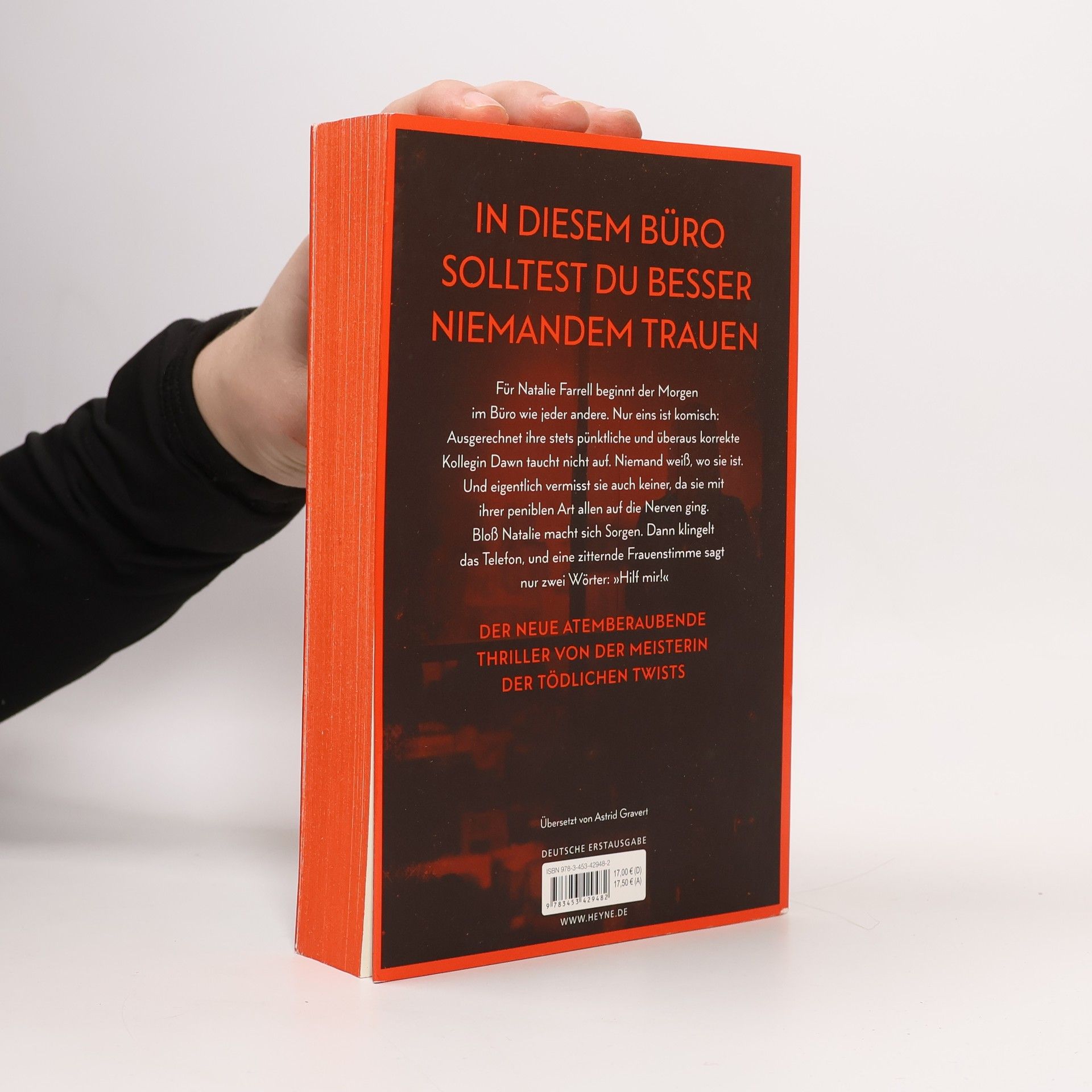 Zwei Frauen. Ein Büro. Ein schreckliches Verbrechen. Mit farbig gestaltetem Buchschnitt in limitierter Erstauflage Dawn Schiff ist seltsam. Darin sind sich ihre Kollegen einig. Sie sagt nie das Richtige. Sie hat keine Freunde. Aber sie ist jeden Morgen um Punkt 8:45 Uhr an ihrem Platz in der Firma, in der sie als Buchhalterin arbeitet. Bis sie eines Morgens nicht auftaucht. Dawns Kollegin Natalie Farrell wundert sich. Dann erhält sie einen anonymen Anruf und fährt zu Dawns Wohnung. Keine Spur von ihrer Kollegin. Doch Natalie bietet sich ein Bild des Grauens. Eins scheint bald klar: Jemand muss Dawn so sehr gehasst haben, dass er sie getötet hat. War es jemand aus ihrem Büro? Je mehr Natalie herausfindet, desto tiefer verstrickt sie sich selbst in ein Netz aus Lügen und Gewalt, aus dem es kein Entkommen gibt. Mit farbig gestaltetem Buchschnitt