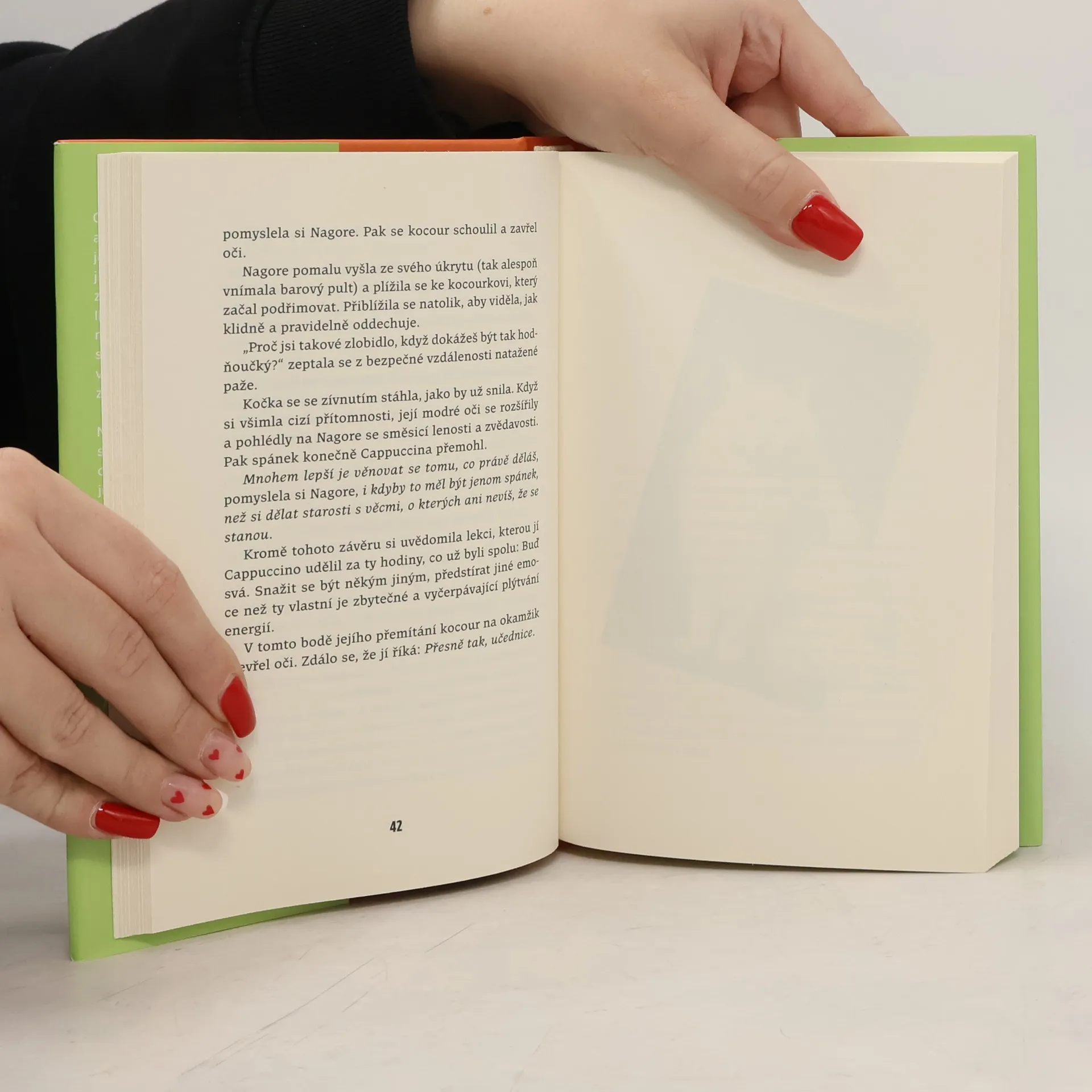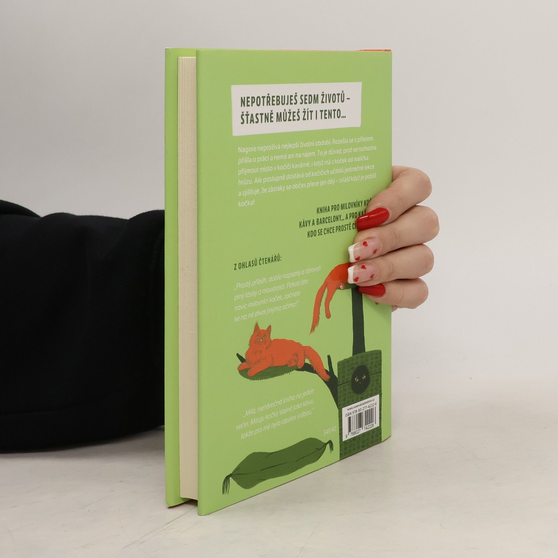 Od chvíle, kdy se rozešla s partnerem a přišla o zaměstnání, je život Nagore jedna velká pohroma. V peněžence jí zbývá posledních pár drobných, z nichž nepokryje ani nájem. V tu chvíli jí však dávná přítelkyně dohodí neobvyklou práci servírky v barcelonském Neko Café, sympatické malé kavárně, kde na své nové páníčky z řad zákazníků čeká sedm koček. Jelikož má Nagore z těchto tvorů už od dětství panickou hrůzu, po prvotním odmítnutí ji zoufalství donutí práci přijmout i proti své vůli. To, co zpočátku do její nejisté reality vtrhne jako uragán, se s přibývajícími dny ukazuje být život proměňující zkušeností. Každý ze sedmi mistrů Neko (japonsky „kočka“) jí poskytne klíč k umění žít, jako je klid, soustředění, flexibilita nebo ryzost srdce a další hodnoty, které začne uplatňovat v každodenním životě, dokud jí osud nepřipraví další nečekaný zvrat. Anna Sólyom napsala milý román, jenž čtenáře vede k poznání, že v životě je vždy možné najít své místo. Jeho děj se odehrává v jedné z kočičích kaváren, které jsou poslední dobou ve větších městech čím dál tím oblíbenější.