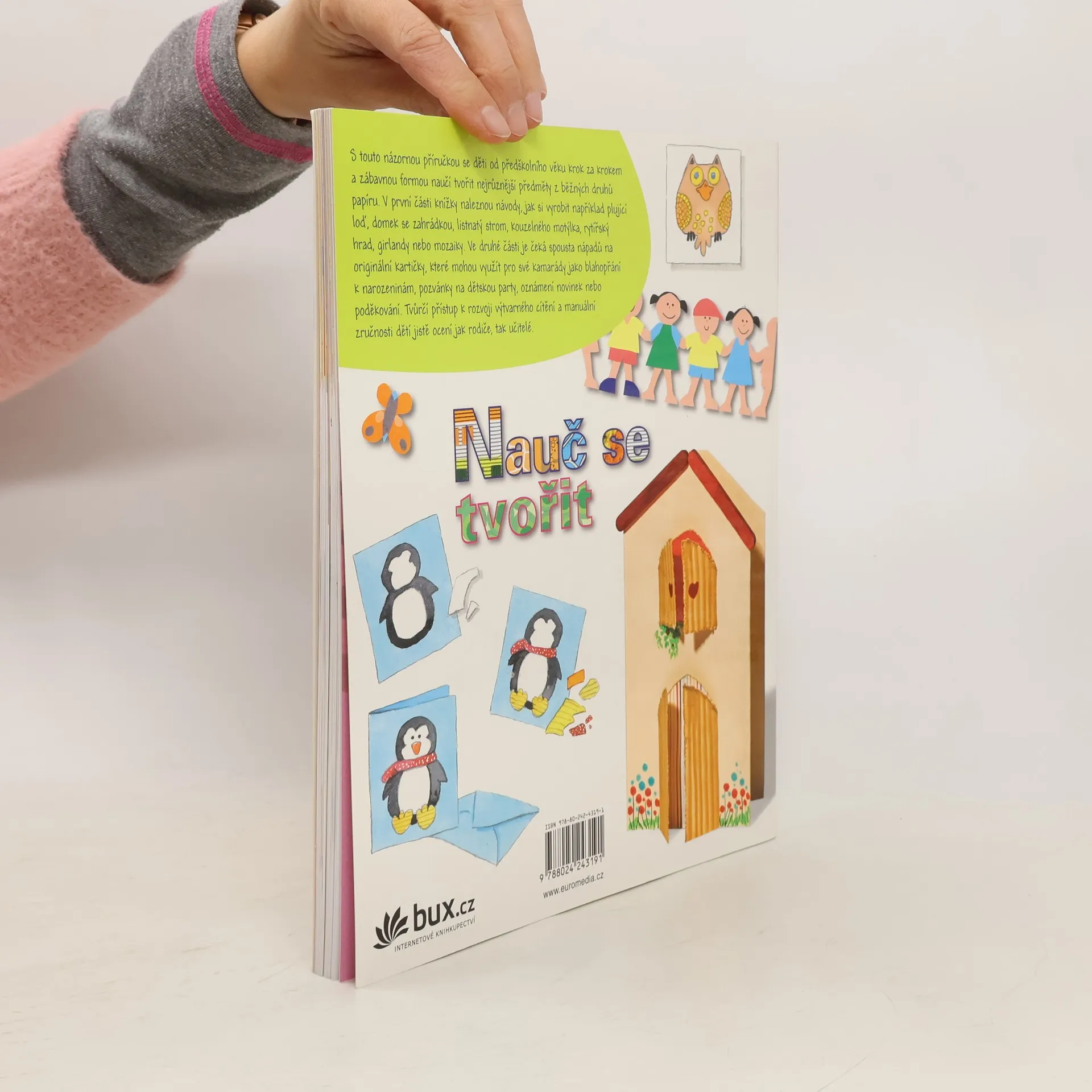 S touto názornou příručkou se děti od předškolního věku krok za krokem a zábavnou formou naučí tvořit předměty z nejrůznějších druhů papíru. V první části knížky naleznou návody, jak si vyrobit například plující loď, domek se zahrádkou, listnatý strom, kouzelného motýlka nebo rytířský hrad, ve druhé části je čeká spousta nápadů na originální kartičky, které se mohou využít jako přání, pozvánky, gratulace apod. Tvůrčí přístup k rozvoji výtvarného cítění a manuální zručnosti dětí ocení jistě i rodiče a učitelé.