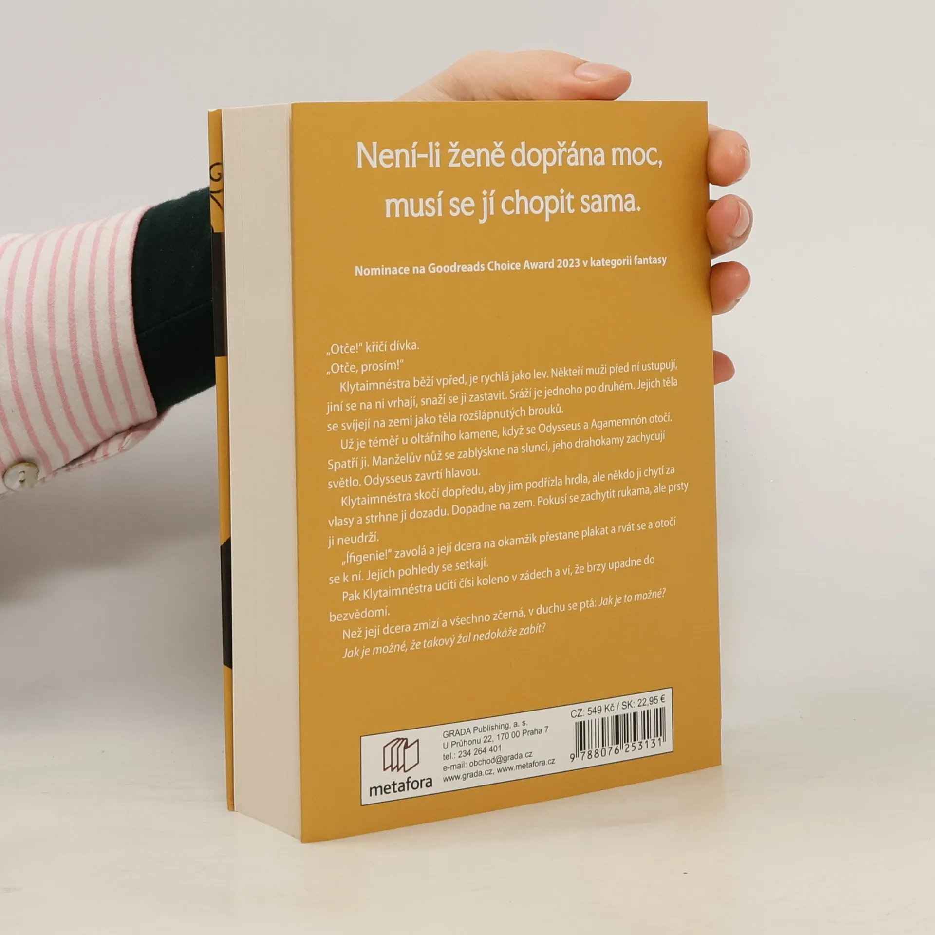 Královny se dělí na ty nenáviděné a ty zapomenuté. A ty nejsi žena, která hodlá zmizet v propadlišti času. Narodila ses králi, provdali tě za tyrana. Bezmocně přihlížíš, jak pro pouhý závan větru, pro přízeň bohů obětuje vaši nejstarší dceru. Není to zdaleka poprvé, kdy ti vzal to,co je ti nejdražší. Pak po mnoho let sleduješ, jak válčí na vzdáleném pobřeží, a při životě tě drží jen myšlenka na pomstu. Tenhle život sis nezasloužila. Nenecháš se zlomit. A pomalu plánuješ. Když se vrátí, musíš se rozhodnout. Usmíření znamená potupu, odplata jistou smrt. Vyčkáváš a doufáš, že teď bohové pomohou tobě. Už dávno jsi totiž pochopila, co ostatním uniká: Pokud ti není dopřána moc, musíš si ji vzít sama