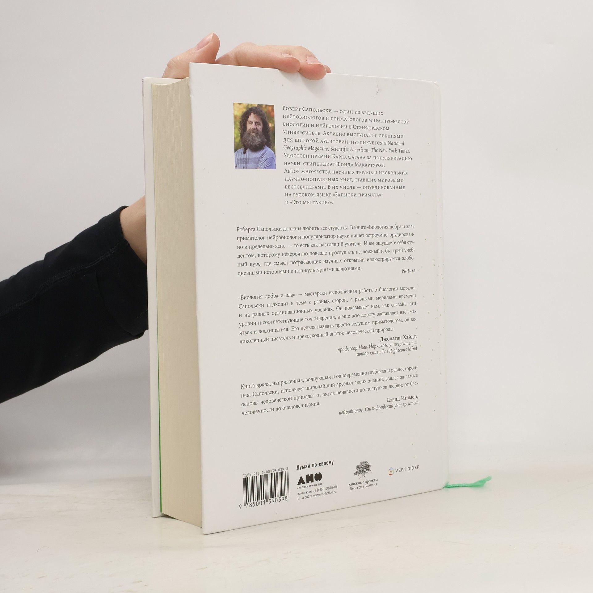 Как говорит знаменитый приматолог и нейробиолог Роберт Сапольски, если вы хотите понять поведение человека и природу хорошего или плохого поступка, вам придется разобраться буквально во всем — и в том, что происходило за секунду до него, и в том, что было миллионы лет назад. В книге автор поэтапно — можно сказать, в хронологическом разрезе — и очень подробно рассматривает огромное количество факторов, влияющих на наше поведение. Как работает наш мозг? За что отвечает миндалина, а за что нам стоит благодарить лобную кору? Что «ненавидит» островок? Почему у лондонских таксистов увеличен гиппокамп? Как связаны длины указательного и безымянного пальцев и количество внутриутробного тестостерона? Чем с точки зрения нейробиологии подростки отличаются от детей и взрослых? Бывают ли «чистые» альтруисты? В чем разница между прощением и примирением? Существует ли свобода воли? Как сложные социальные связи влияют на наше поведение и принятие решений? И это лишь малая часть вопросов, рассматриваемых в масштабной работе известного ученого.