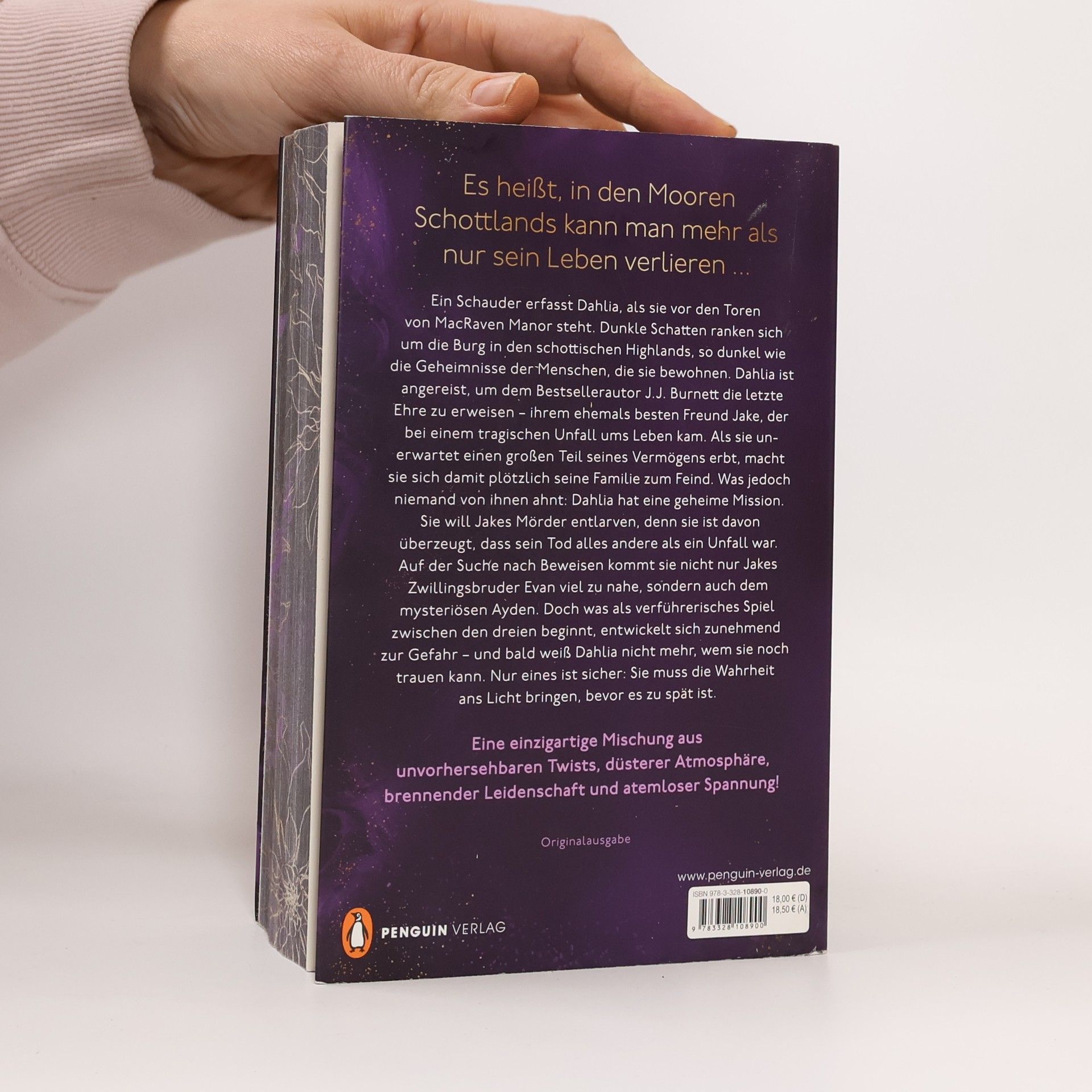Es heißt, in den Mooren Schottlands kann man mehr als nur sein Leben verlieren ...Ein Schauder erfasst Dahlia, als sie vor den Toren von MacRaven Manor steht. Dunkle Schatten ranken sich um die Burg in den schottischen Highlands, so dunkel wie die Geheimnisse der Menschen, die sie bewohnen. Dahlia ist angereist, um dem Bestsellerautor J.J. Burnett die letzte Ehre zu erweisen – ihrem ehemals besten Freund Jake, der bei einem tragischen Unfall ums Leben kam. Als sie unerwartet einen großen Teil seines Vermögens erbt, macht sie sich damit plötzlich seine Familie zum Feind. Was jedoch niemand von ihnen ahnt: Dahlia hat eine geheime Mission. Sie will Jakes Mörder entlarven, denn sie ist davon überzeugt, dass sein Tod alles andere als ein Unfall war. Auf der Suche nach Beweisen kommt sie nicht nur Jakes Zwillingsbruder Evan viel zu nahe, sondern auch dem mysteriösen Ayden. Doch was als verführerisches Spiel zwischen den dreien beginnt, entwickelt sich zunehmend zur Gefahr – und bald weiß Dahlia nicht mehr, wem sie noch trauen kann. Nur eines ist sicher: Sie muss die Wahrheit ans Licht bringen, bevor es zu spät ist.Ein vertuschter Mord, ein Erbe in Millionenhöhe und eine Liebe, die gefährlicher kaum sein könnte … Düster, atmosphärisch, spannend und voller Leidenschaft.»BAD VIBES« ist perfekt für dich, wenn du auf diese Tropes stehst:• Spice & Thrill• Secrets & Lies• Enemies to Lovers• Dark Past• Forced Proximity