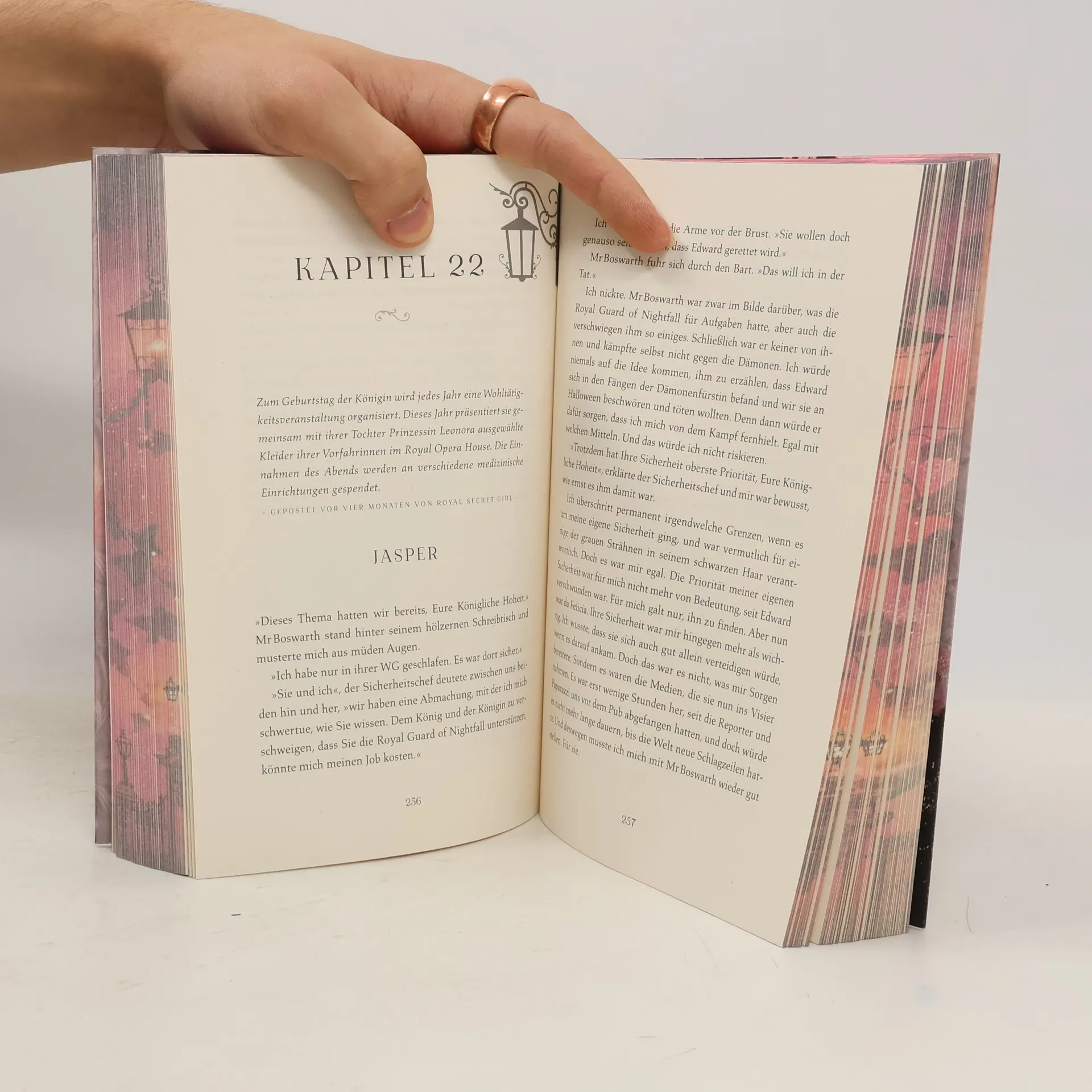 Kaum jemand weiß über die britische Königsfamilie so gut Bescheid wie Felicia. Als Royal Secret Girl bloggt sie täglich über die Ups und Downs im Buckingham Palace und begeistert Hunderttausende von Fans. Doch dann wird Felicia mitten in London von einem Dämon angegriffen und kommt nur knapp mit dem Leben davon. Glück im Unglück, denn ihr geheimnisvoller Retter lässt beim Kampf mit der Kreatur ein Amulett fallen, das Felicia hinter das bestgehütete Geheimnis der Stadt bringt: Die Royal Guards sind in Wahrheit Londons Dämonenjäger und ihr Beschützer niemand Geringeres als Prinz Jasper selbst. Ausgerechnet er soll sie nun im Kampf gegen das Übernatürliche ausbilden, nicht ahnend, wer Felicia wirklich ist …Forced Proximity trifft auf Secret Identity in einem atemberaubend düsteren Setting im Herzen Londons. Der Auftakt zur hoch romantischen Fantasy-Trilogie von SPIEGEL-Bestseller-Autorin Julia Kuhn.