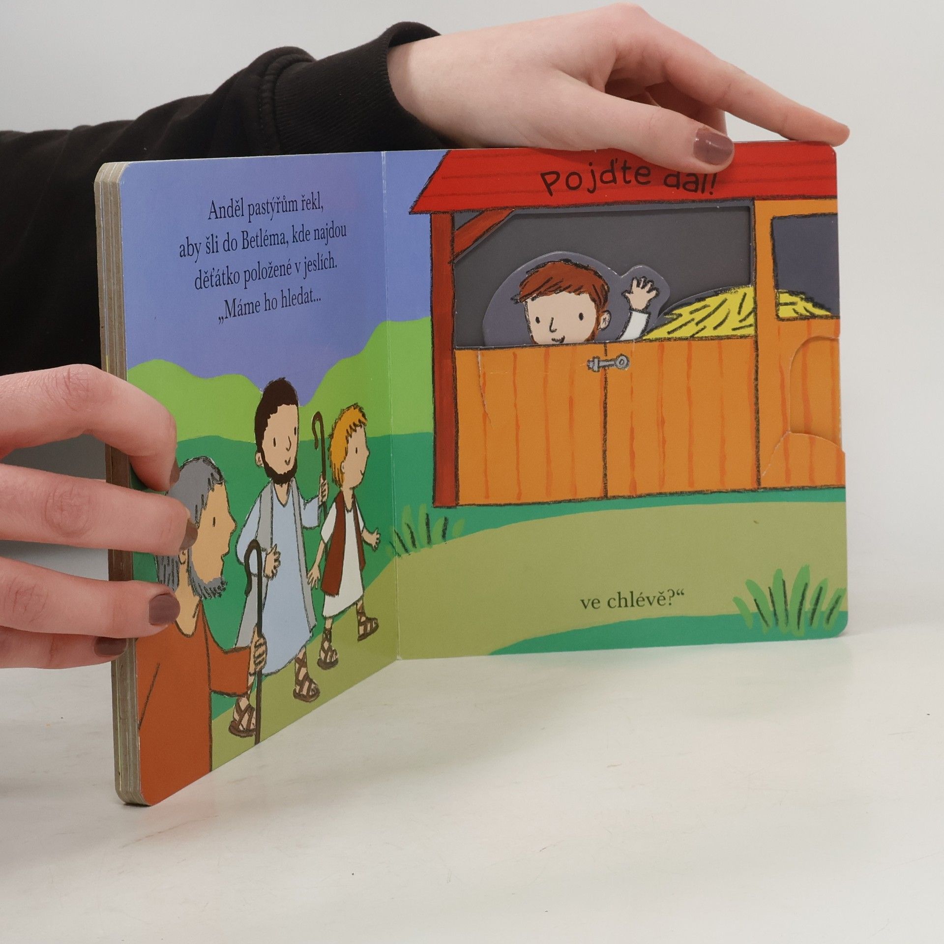 Knížka s pohyblivými obrázky. Vyprávějte si s dětmi příběh o narození Ježíška. Děti si při tom mohou hrát s pohyblivými obrázky. Knížka je určena dětem ve věku od 2 let.