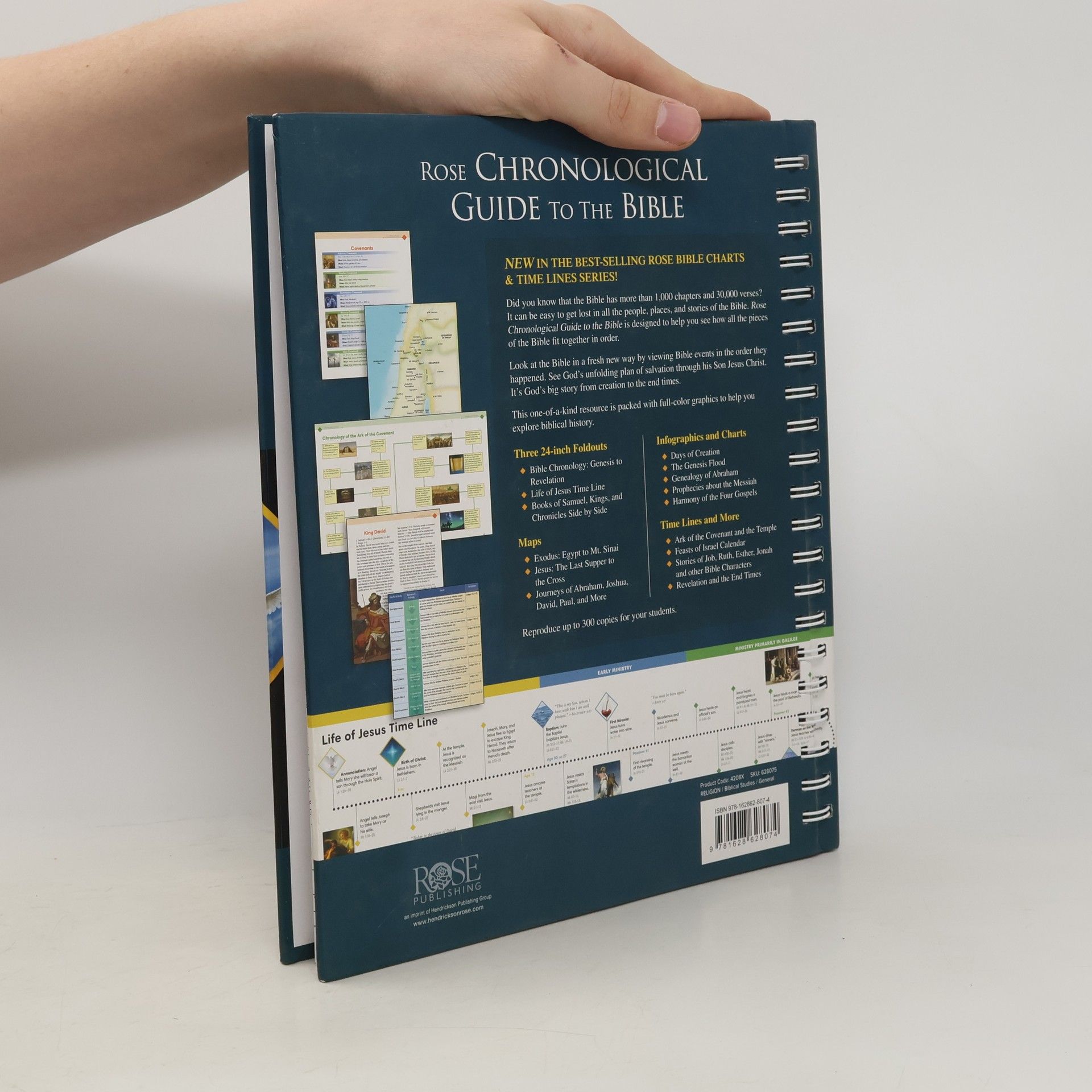 Did you know that the Bible has more that 1,000 chapters and 30,000 verses. It can be easy to get lost in all the people, places, and stories of the Bible. Rose Chronological Guide to the Bible. is designed to help you see how all the pieces of the Bible fit together in order. Look at the Bible in a fresh new way by viewing the Bible events in the order they happened. See God's unfolding plan of salvation through his Son Jesus Christ. It's God's big story from creation to end times. The one-of-a-kind resource is packed with full-color graphics to help you explore biblical history. Three 24-inch Foldouts - Bible Chronology: Genesis to Revelation - Life of Jesus Time Line - Books of Samuel, Kings, and Chronicles Side by SideMaps - Exodus: Egypt to Mt. Sinai - Jesus: The Last Supper to the Cross - Journeys of Abraham, Joshua, David, Paul, and MoreInfographics and Charts - Days of Creation - The Genesis Flood - Genealogy of Abraham - Prophecies about the Messiah - Harmony of the Four GospelsTime Lines and More - Ark of the Covenant and the Temple - Feasts of the Israel Calendar - Stories of Job, Ruth, Esther, Jonah and other Bible Characters - Revelation and the End TimesReproduce up toe 300 copies for your students.