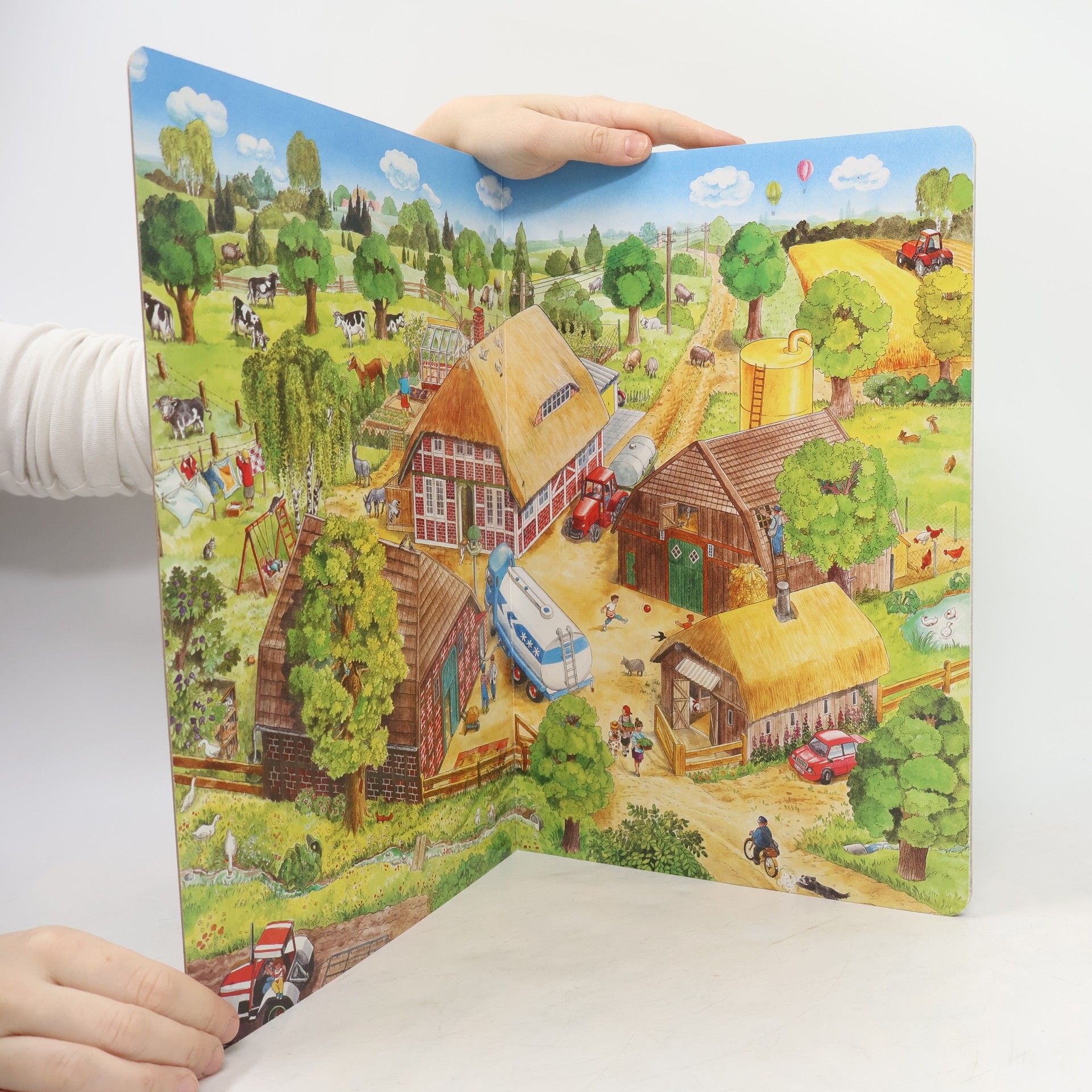 Maxi leporelo - Poutavé ilustrace této velké obrázkové knížky zvou děvčátka a chlapce v předškolním věku k soustředěnému pozorování a vyprávění. Celostránkové výjevy ze života na statku na stránkách přímo ožívají s postavami a vybízejí k dalšímu rozvíjení zobrazených situací. Popusťte uzdu fantazii a vyprávějte, co se na obrázcích děje!