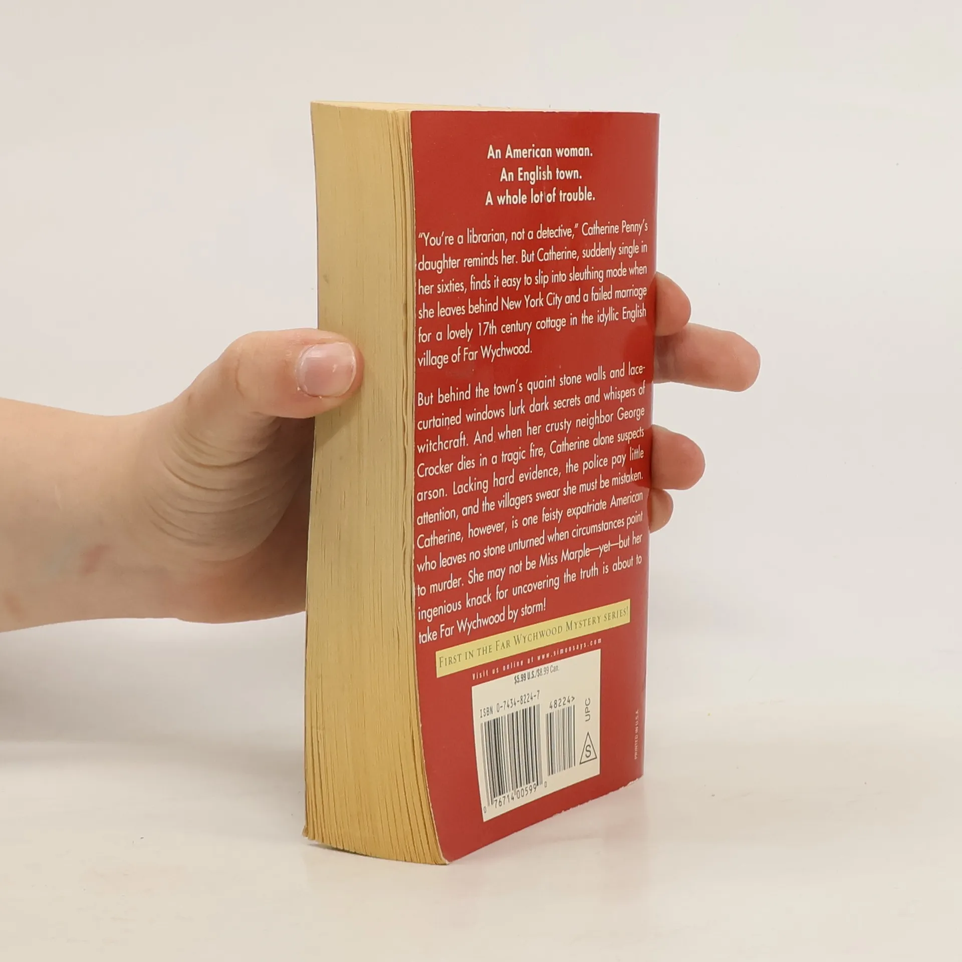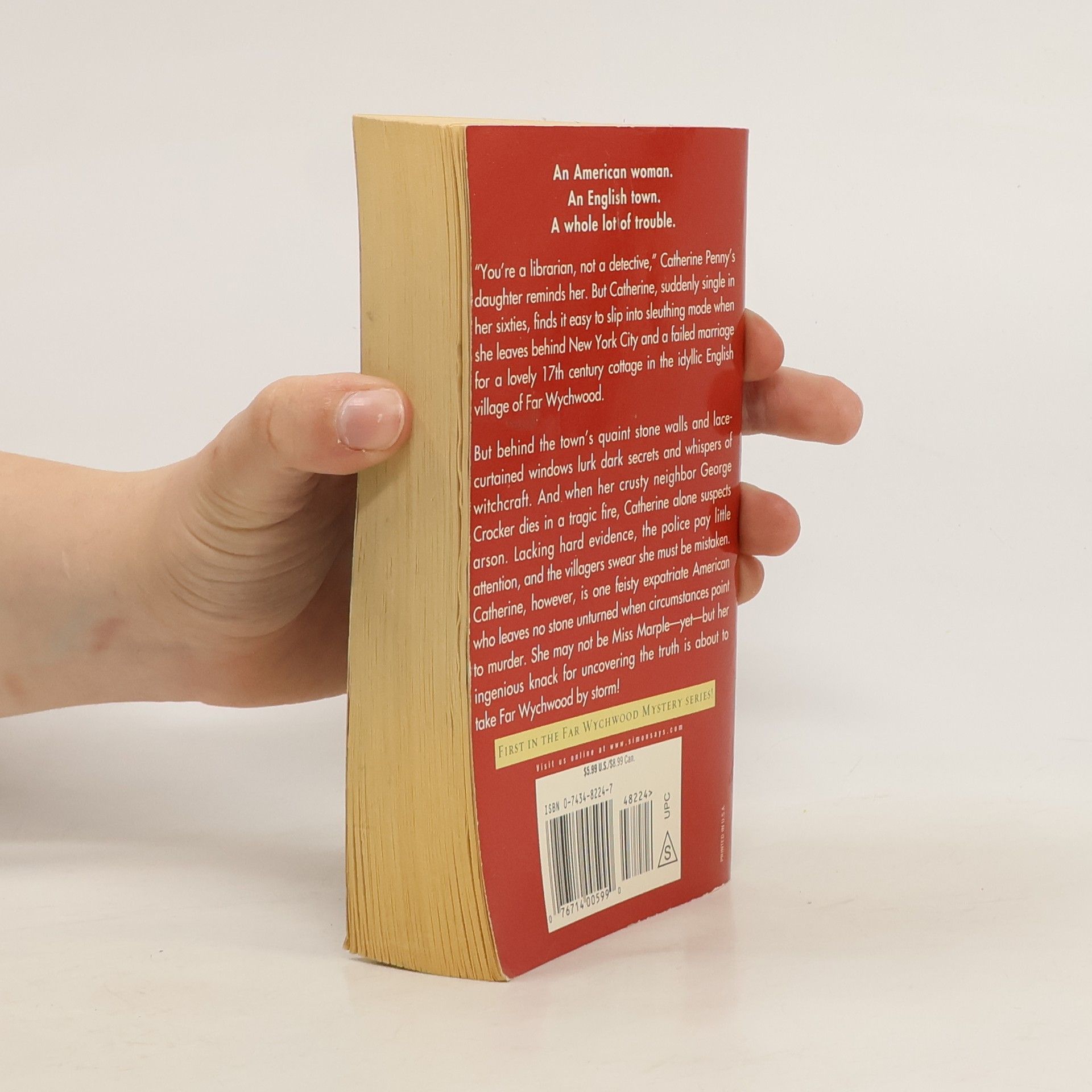 "You're a librarian, not a detective," Catherine Penny's daughter reminds her. But Catherine, suddenly single in her sixties, finds it easy to slip into sleuthing mode when she leaves behind New York City and a failed marriage for a lovely 17th century cottage in the idyllic English village of Far Wychwood. But behind the town's quaint stone walls and lace-curtained windows lurk dark secrets and whispers of witchcraft. And when her crusty neighbor George Crocker dies in a tragic fire, Catherine alone suspects arson. Lacking hard evidence, the police pay little attention, and the villagers swear she must be mistaken. Catherine, however, is one feisty expatriate American who leaves no stone unturned when circumstances point to murder. She may not be Miss Marple--yet--but her ingenious knack for uncovering the truth is about to take Far Wychwood by storm!