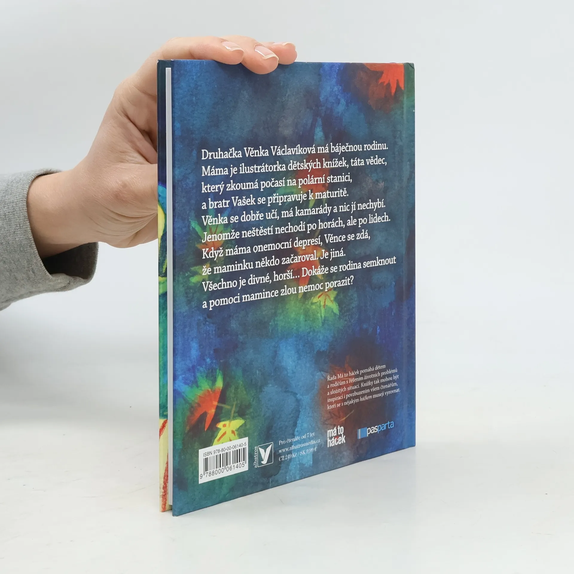 Druhačka Věnka Václavíková má báječnou rodinu. Máma je ilustrátorka dětských knížek, táta vědec, který zkoumá počasí na polární stanici, a bratr Vašek se připravuje k maturitě. Věnka se učí dobře, má kamarády a nic jí nechybí. Jenomže neštěstí nechodí po horách, ale po lidech. Když máma onemocní depresí, Věnce se zdá, že maminku někdo začaroval. Je jiná. Všechno je divné, horší… Dokáže se rodina semknout a pomoci mamince zlou nemoc porazit?