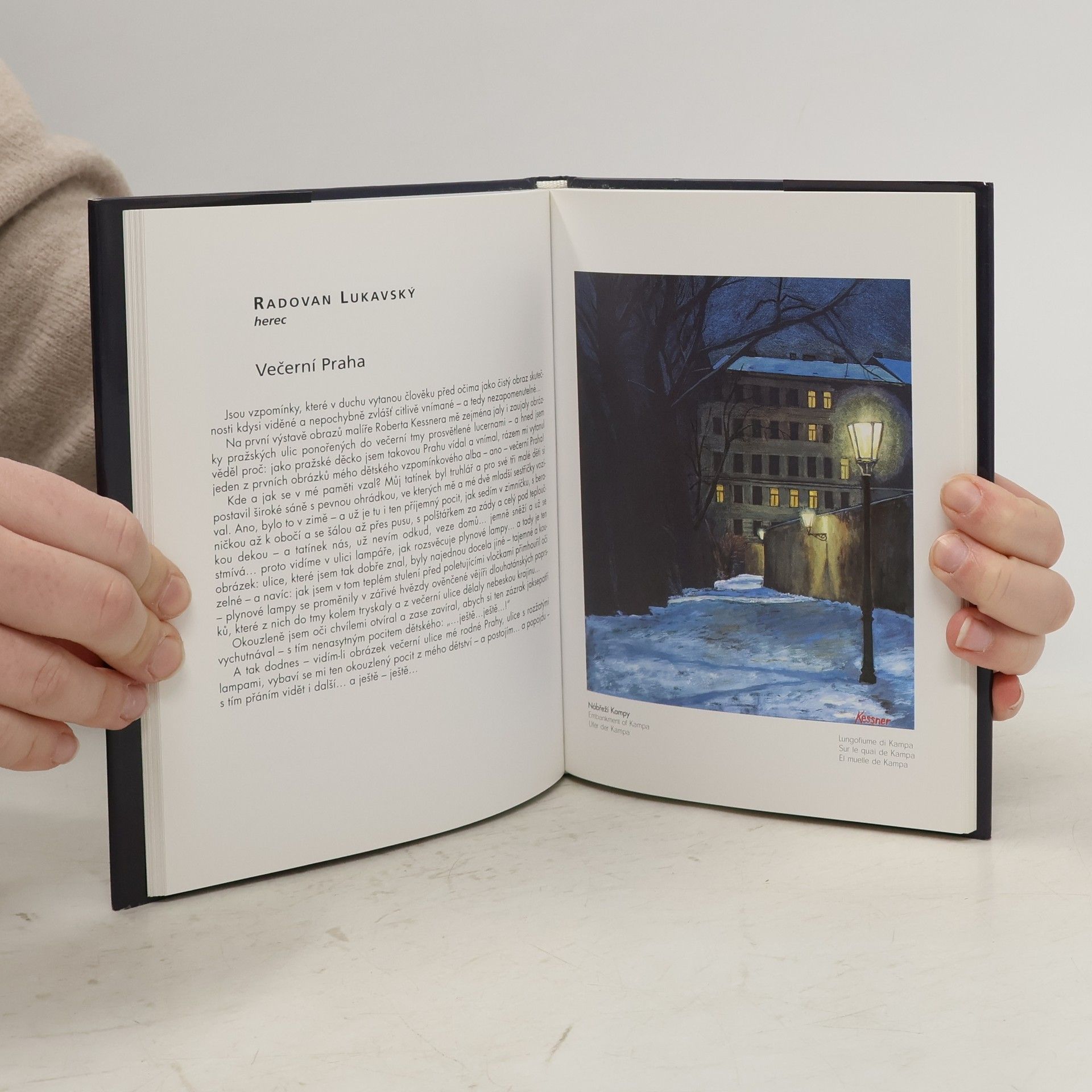 Malebné obrázky pražských zákoutí či památek jsou doprovázeny krátkými texty známých osobností. Několik desítek obrázků vyjadřujících atmosféru pražských uliček, náměstí, parků či mostů inspirovalo osobnosti českého kulturního a veřejného života k napsání krátkého zamyšlení, vzpomínky, vyznání nebo i básně. Tak vznikla kniha, která potěší zejména milovníky Prahy.