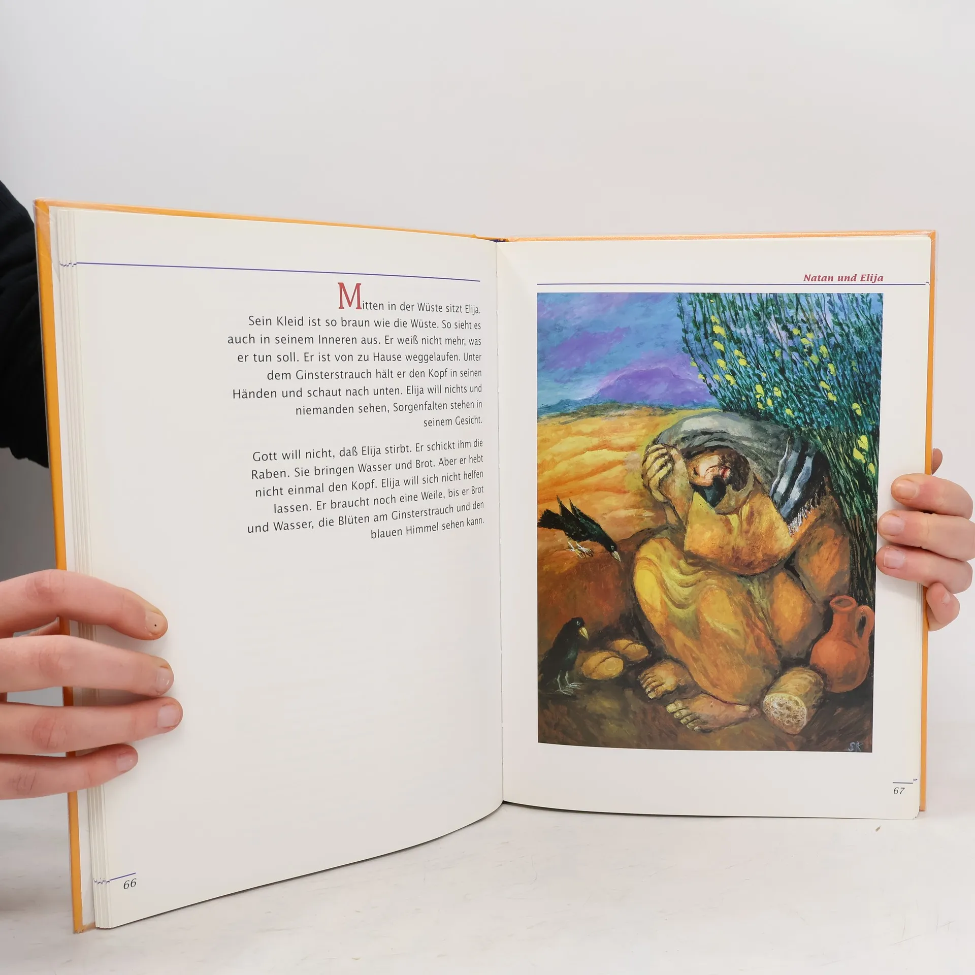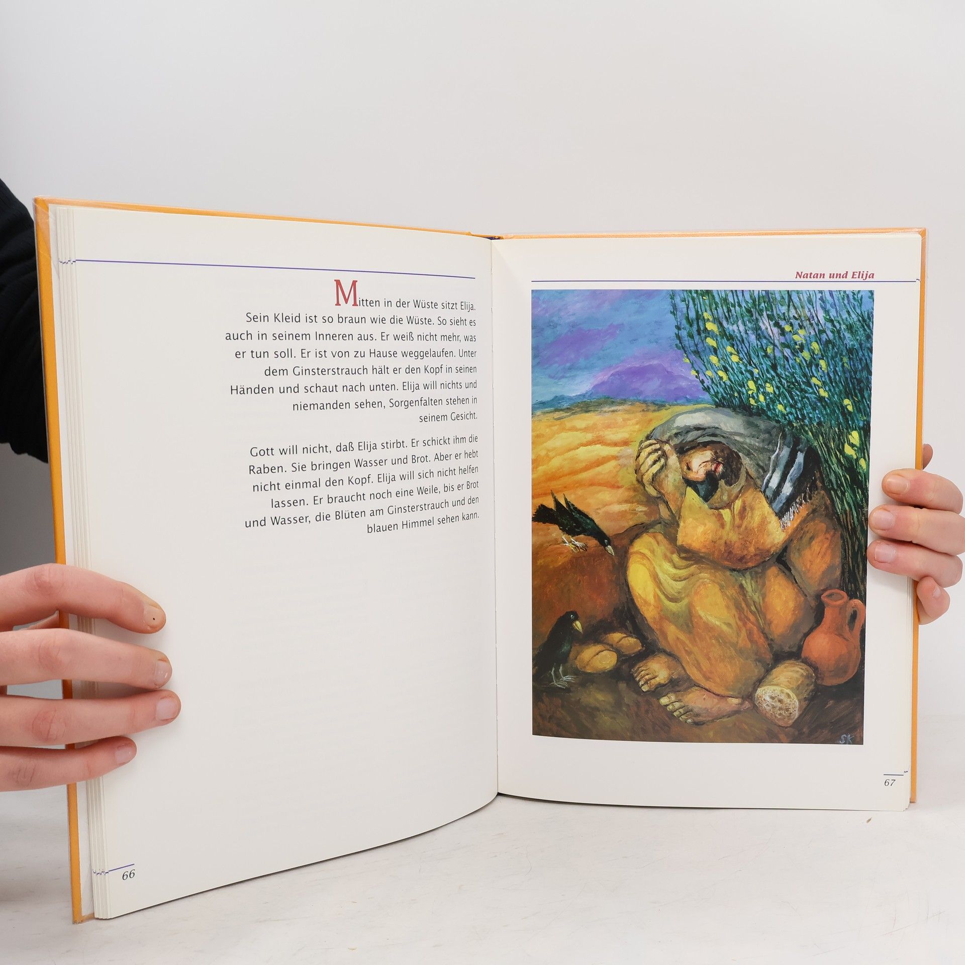 Eine ganz besondere Bibel, nicht nur für Kinder: Mein erster Gedanke, als ich das Buch sah: Nicht schon wieder eine neue Kinderbibel! Doch diese ist anders: Eine Bibel mit wunderschönen, ausdruckstarken Bildern des Künstlers Sieger Köder! Zu jedem Kapitel, die farblich voneinander abgegrenzt sind, gehören eines oder zwei; und bei jedem dieser ganz besonderen Bilder steht ein meditativer Text, der hilft, das Bild, und somit auch die biblische Geschichte, besser zu sehen und zu verstehen. Auf den nächsten Seiten werden die dazu gehörenden Geschichten erzählt, in einer lebendigen Sprache und doch nahe am biblischen Text. Einzelne Ausschnitte aus dem grossen Bild werden hier nochmals aufgegriffen. In farblich unterlegten Kästchen werden Informationen und Erläuterungen weitergegeben. Ein kurzes Portrait des Künstlers rundet dieses eindrückliche Werk ab. Schade eigentlich nur, dass das Buch als "Kinderbibel" gekennzeichnet ist und somit vielen unbekannt bleibt. Mein Mann meinte auch ganz spontan: Das ist doch nicht nur eine Bibel für Kinder! Da hätte mancher Erwachsene grosse Freude und Gewinn beim Lesen und Anschauen. Ab 8 Jahren, ausgezeichnet, Irene Beglinger-Flückiger.