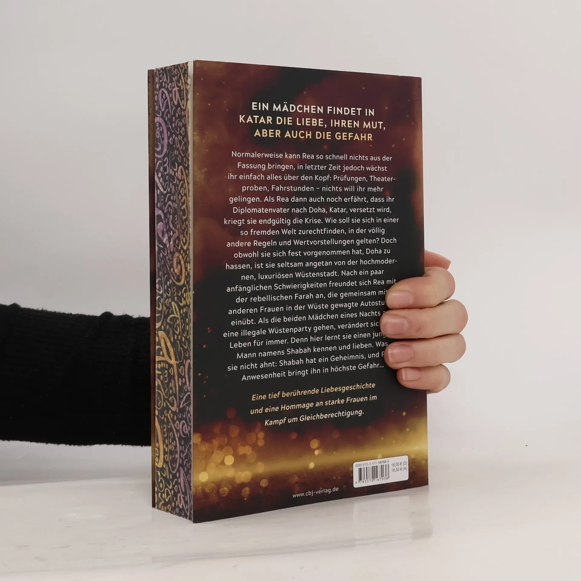 Ein Mädchen findet in Katar die Liebe, ihren Mut, aber auch die Gefahr Normalerweise kann Rea so schnell nichts aus der Fassung bringen, in letzter Zeit jedoch wächst ihr einfach alles über den Kopf: Prüfungen, Theaterproben, Fahrstunden – nichts will ihr mehr gelingen. Als Rea dann auch noch erfährt, dass ihr Diplomatenvater nach Doha, Katar, versetzt wird, kriegt sie endgültig die Krise. Wie soll sie sich in einer so fremden Welt zurechtfinden, in der völlig andere Regeln und Wertvorstellungen gelten? Doch obwohl sie sich fest vorgenommen hat, Doha zu hassen, ist sie seltsam angetan von der hochmodernen, luxuriösen Wüstenstadt. Nach ein paar anfänglichen Schwierigkeiten freundet sich Rea mit der rebellischen Farah an, die gemeinsam mit anderen Frauen in der Wüste gewagte Autostunts einübt. Als die beiden Mädchen eines Nachts auf eine illegale Wüstenparty gehen, verändert sich Reas Leben für immer. Denn hier lernt sie einen jungen Mann namens Shabah kennen und lieben. Was sie nicht ahnt: Shabah hat ein Geheimnis, und Reas Anwesenheit bringt ihn in höchste Gefahr ... Das heiß ersehnte neue Buch der Spiegel-Bestsellerautorin: eine tief berührende Liebesgeschichte und eine Hommage an starke Frauen im Kampf um Gleichberechtigung.