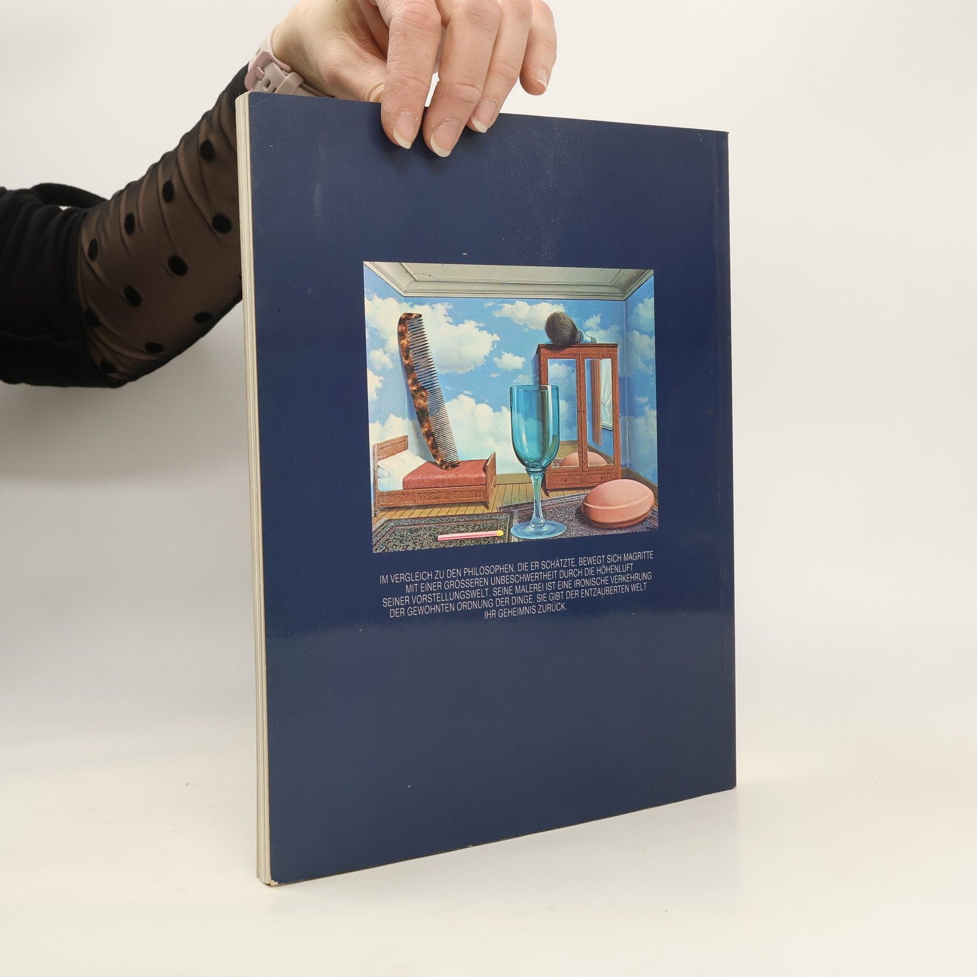 Im Vergleich zu den Philosophen, die er schätzte, bewegt sich Magritte mit einer größeren Unbeschwertheit durch die Höhenluft seiner Vorstellungswelt. Seine Malerei ist eine ironische Verkehrung der gewohnten Ordnung der Dinge. Sie gibt der entzauberten Welt ihr Geheimnis zurück.