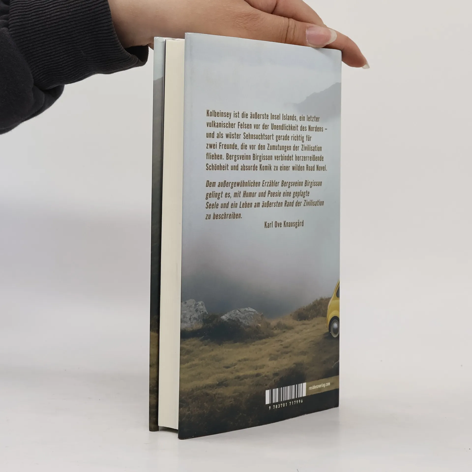 In „Die Insel Kolbeinsey“ erzählt Bergsveinn Birgisson von sympathischen Außenseitern und der magischen, wilden Landschaft seiner Heimat: Ein Mann beschließt, seinen depressiven Freund aus der psychiatrischen Anstalt zu befreien, in die dieser eingewiesen wurde. Die Abgeschiedenheit der nördlichsten Insel Islands soll ihn heilen. Die Flucht der beiden aus der Zivilisation wird zu einer wilden Verfolgungsjagd, die sie in immer entlegenere Gebiete führt. Eine wütende Krankenschwester, die ihnen auf den Fersen geblieben ist, wird gekidnappt und auf den Rücksitz des Autos verfrachtet. Zu dritt treten sie eine filmreife Reise an, die „Fargo“ an Absurdität um nichts nachsteht und die tiefe Freundschaft der beiden Männer auf eine harte Probe stellt.