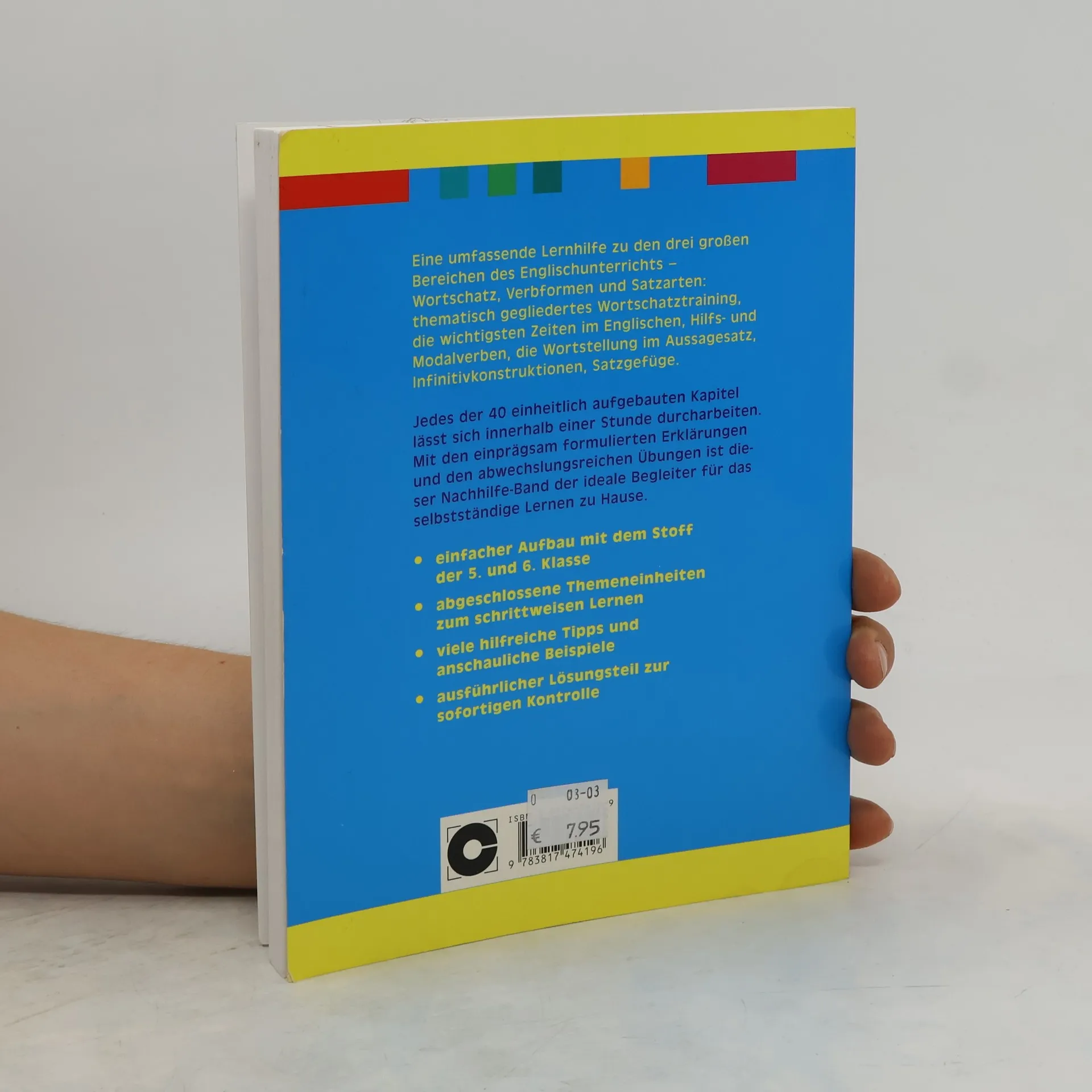Diese umfassende Lernhilfe behandelt die wichtigsten Themen des Englischunterrichts der 5. und 6. Jahrgangsstufe. 40 einstündige Kapitel bestehend aus Erklärungs-, Übungs- und Lösungsseiten in ansprechendem Layout und hilfreichen Hinweisen auf Sonderfälle und besondere Fehlerquellen.