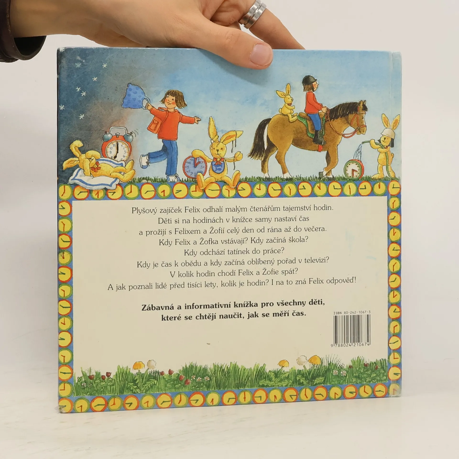 Knížka s hodinami s pohyblivými ručičkami. V druhé knížce zajíc Felix zasvětí malé čtenáře do tajemství času a hodin. Děti se dozvědí, kdo začal prvně v historii lidstva měřit čas, jak vypadaly sluneční nebo vodní hodiny a jaké hodiny používáme dnes. Prožijí s Felixem a jeho kamarádkou Žofkou celý den a zjistí, kdy chodí Žofka do školy, kdy obědvá, jak se baví odpoledne a kdy chodí s Felixem spát. V knize najdeme kromě veselých obrázků ciferník s pohyblivými ručičkami, na nichž si děti mohou nastavit čas. Tištěno na tvrdých kartonových listech s průřezem na plastický obrázek.