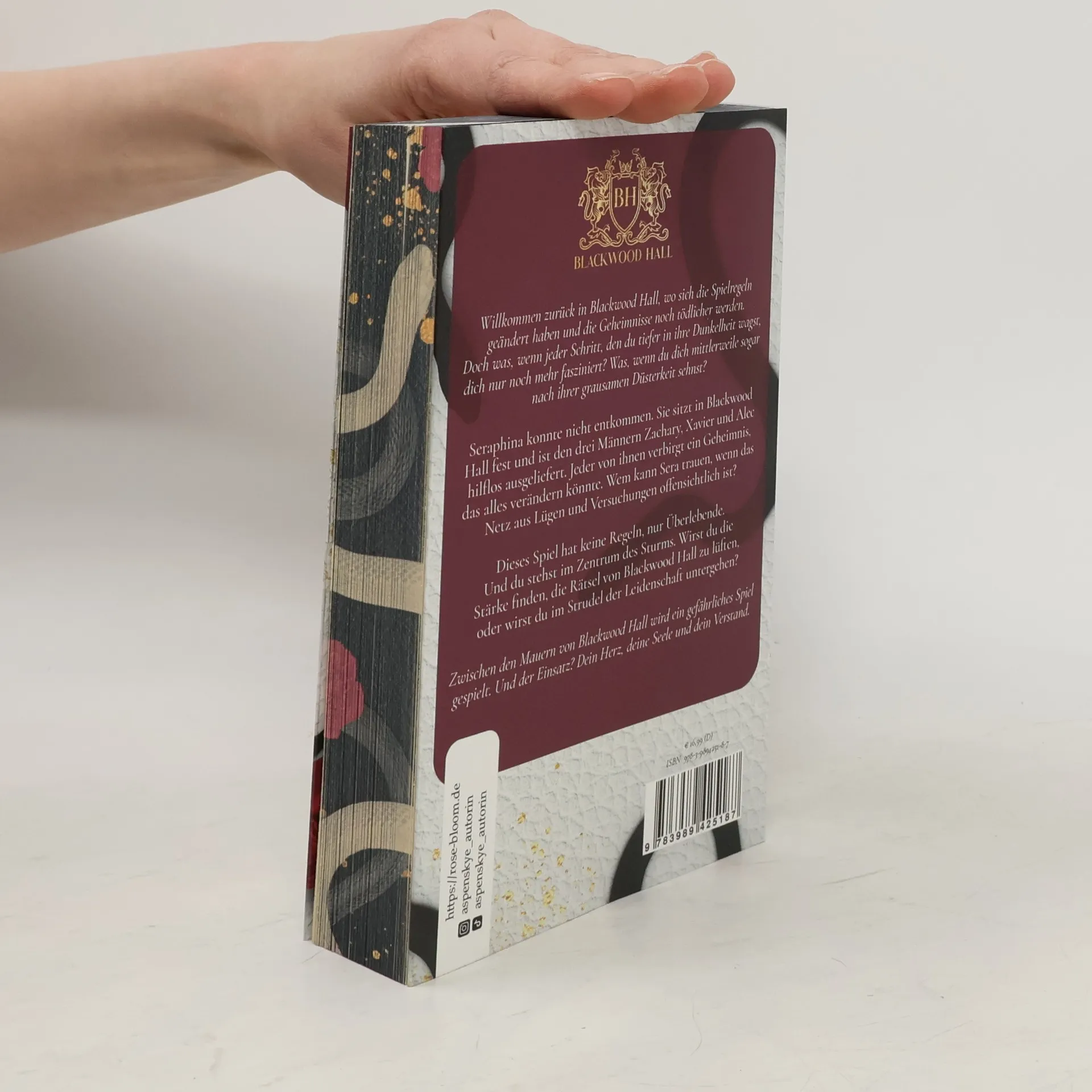 +++ Aufwendig gestaltete Ausgabe mit limitiertem Farbschnitt +++ Willkommen zurück in Blackwood Hall, wo sich die Spielregeln geändert haben und die Geheimnisse noch tödlicher werden. Doch was, wenn jeder Schritt, den du tiefer in ihre Dunkelheit wagst, dich nur noch mehr fasziniert? Was, wenn du dich mittlerweile sogar nach ihrer grausamen Düsterkeit sehnst? Seraphina konnte nicht entkommen. Sie sitzt in Blackwood Hall fest und ist den drei Männern Zachary, Xavier und Alec hilflos ausgeliefert. Jeder von ihnen verbirgt ein Geheimnis, das alles verändern könnte. Wem kann Sera trauen, wenn das Netz aus Lügen und Versuchungen offensichtlich ist? Dieses Spiel hat keine Regeln, nur Überlebende. Und du stehst im Zentrum des Sturms. Wirst du die Stärke finden, die Rätsel von Blackwood Hall zu lüften, oder wirst du im Strudel der Leidenschaft untergehen? Zwischen den Mauern von Blackwood Hall wird ein gefährliches Spiel gespielt. Und der Einsatz? Dein Herz, deine Seele und dein Verstand.