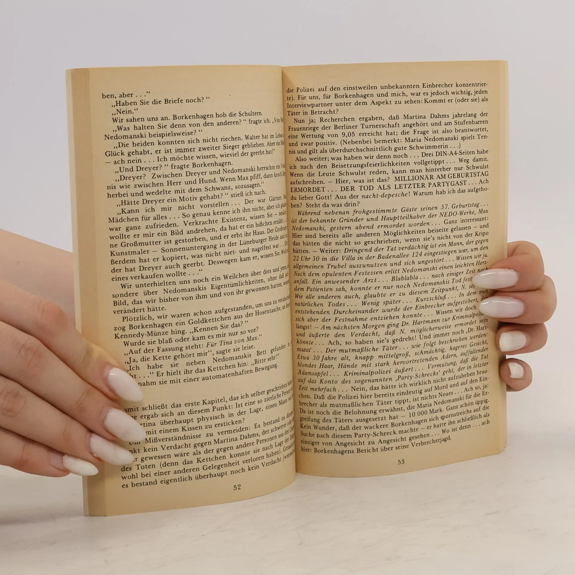 Max Nedomanski ist tot - das steht mal fest. Und das ist auch schon alles, was zweifelsfrei feststeht. Der Arzt, der den Tod konstatiert, ist kein Arzt, und zu jenem Zeitpunkt hat Nedomanski sogar noch gelebt. Und muss es Mord gewesen sein, nur weil nicht gerade wenige Menschen fur einen Mord gute Grunde und Gelegenheit genug hatten? Bei einem wie Max Nedomanski ist alles drin: naturlicher Tod, Selbstmord, Totung auf Verlangen ... Dann wird ein Mann verhaftet. Ein Einbrecher, der zugibt, in das Zimmer eingedrungen zu sein, in dem Nedomanski lag. Noch lebend oder bereits tot? Er hat noch gelebt, behauptet der Einbrecher, und er hat gerochelt. So, als hatte ihn jemand gewurgt? Erhartet sich die These vom Mord an Max Nedomanski? Wie gesagt: Max Nedomanski ist tot - das steht mal fest