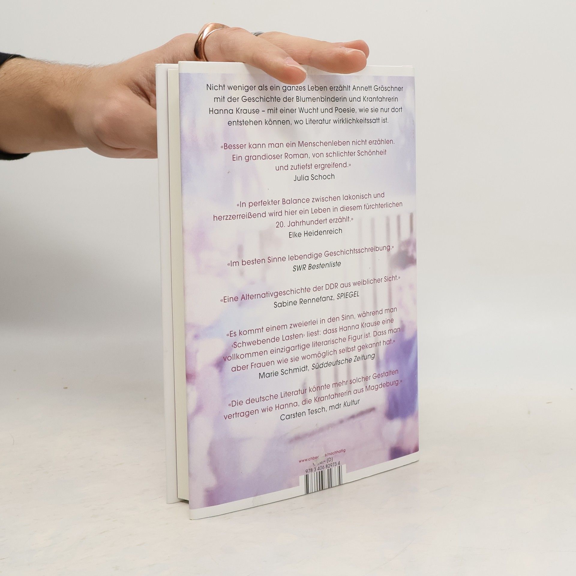 Nicht weniger als ein ganzes Leben erzählt Annett Gröschner mit der Geschichte der Blumenbinderin und Kranfahrerin Hanna Krause – mit einer Wucht und Poesie, wie sie nur dort entstehen können, wo die Literatur wirklichkeitssatt ist.Hanna Krause war Blumenbinderin, bevor das Leben sie zur Kranführerin machte. Sie hat zwei Revolutionen, zwei Diktaturen, einen Aufstand, zwei Weltkriege und zwei Niederlagen, zwei Demokratien, den Kaiser und andere Führer, gute und schlechte Zeiten erlebt, hat sechs Kinder geboren und zwei davon nicht begraben können, was ihr naheging bis zum Lebensende. Hatte später, nachdem ihr Blumenladen längst Geschichte war, von einem Kran in der Halle eines Schwermaschinenbaubetriebes in Magdeburg einen guten Überblick auf die Beziehungen der Menschen zehn Meter unter ihr und starb rechtzeitig, bevor sie die Welt nicht mehr verstand. Hanna Krause blieb bis zu ihrem Tod eine, die das Leben nimmt, wie es kommt. Ihr einziges anständig bleiben. Annett Gröschners Roman erzählt die Geschichte eines Jahrhunderts in einem einzigen Leben und gibt, mit Hanna, denen ein Gesicht, die zu oft unsichtbar bleiben. Ein Roman über das Ende des Industriezeitalters und seiner Heldinnen im Osten Deutschlands – und über eine gewöhnliche Frau in diesem unfassbaren 20. Jahrhundert.