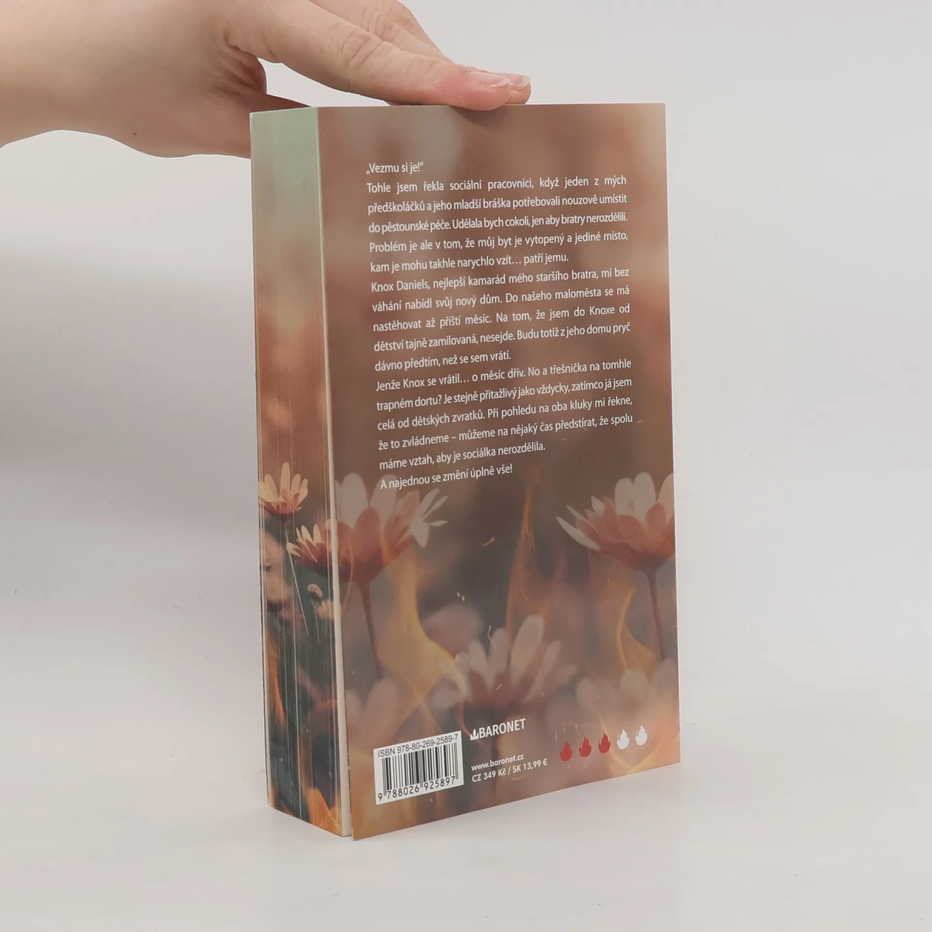 Romance o druhých šancích v životě i v lásce. Od autorky bestselleru Čtvrté křídlo. Harper Andersová miluje děti – jinak by neučila ve školce. Když je potřeba najít nouzovou pěstounskou péči pro jednoho předškoláka a jeho bratříčka, rozhodne se je vzít k sobě. Její byt je ale vytopený… a tak skončí ve volném domě její dávné lásky Knoxe Danielse. Ten se měl do města vrátit až za měsíc, ale najednou stojí ve dveřích a před sebou má Harper celou od dětských zvratků. Pak ale prohlásí, že to zvládnou společně. Dokážou Harper a Knox dočasně předstírat vztah, aby systém malé bratry nerozdělil?